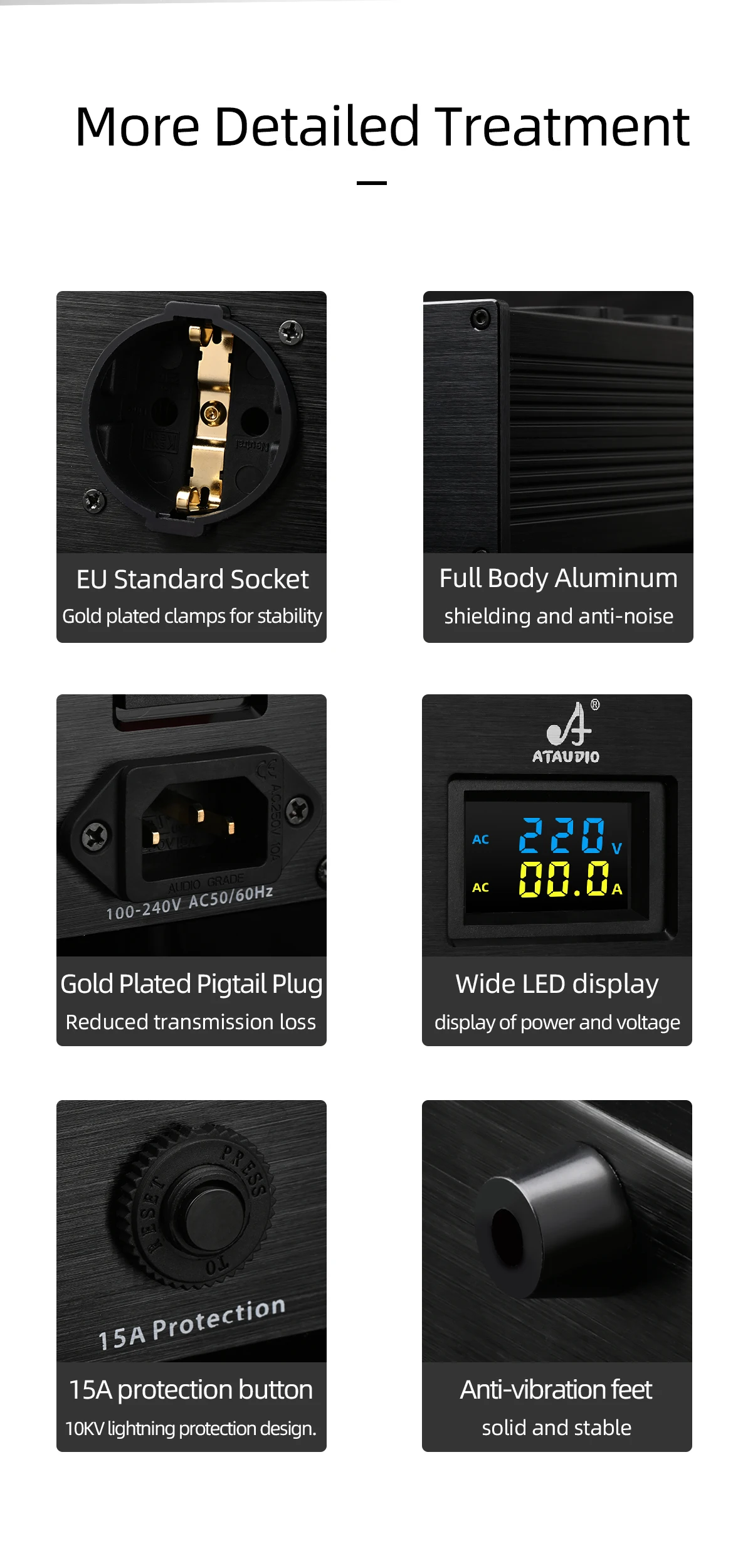 Ataudio power filter, hi-fi protection and audio power purifier has an amazing build quality. I connected it to my hi-fi equipment and the tv. I was surprised by the quality of the improvement in the sound of the hi-fi equipment and the absolutely wonderful tv image. I recommend it