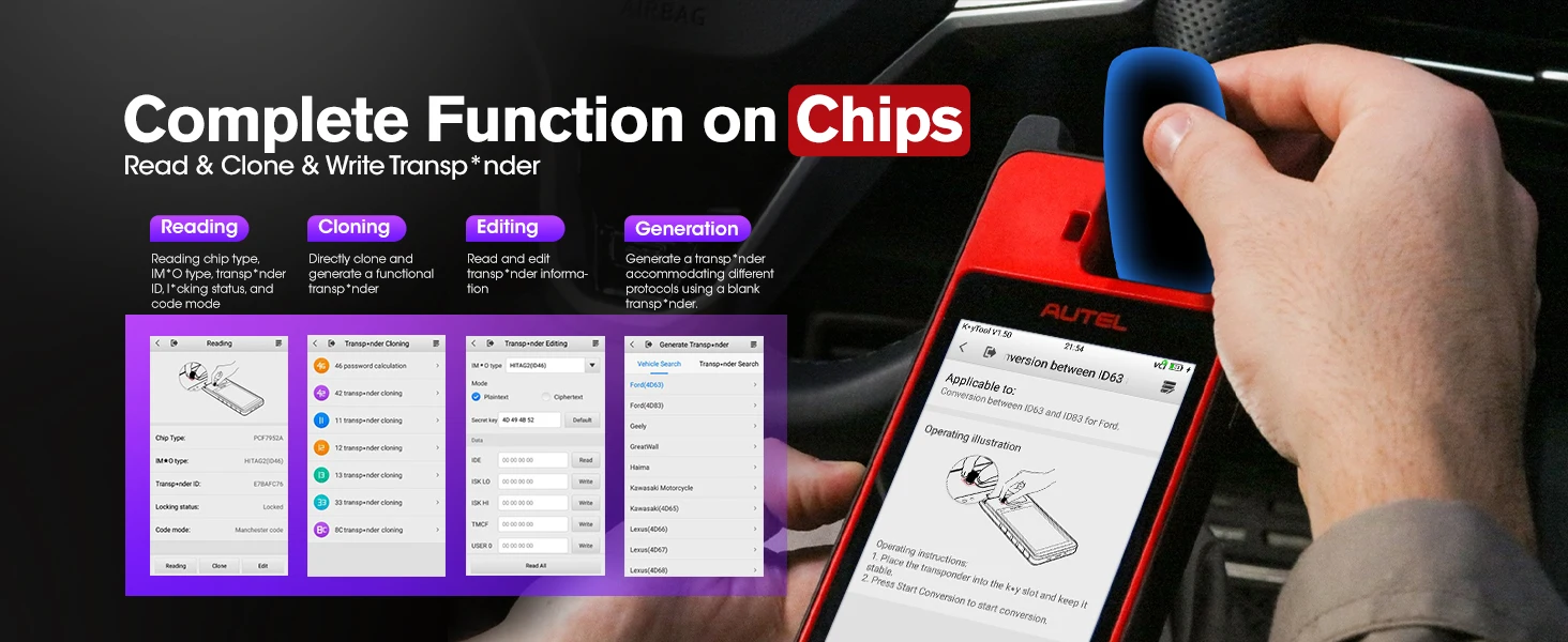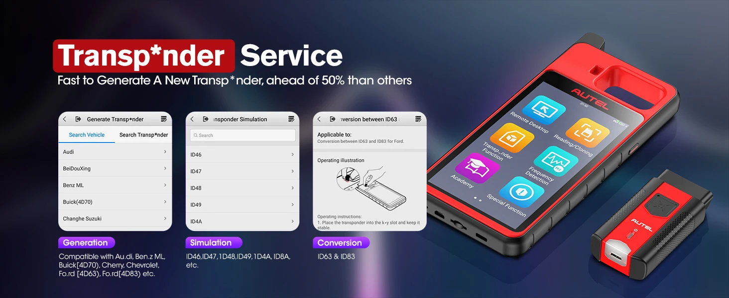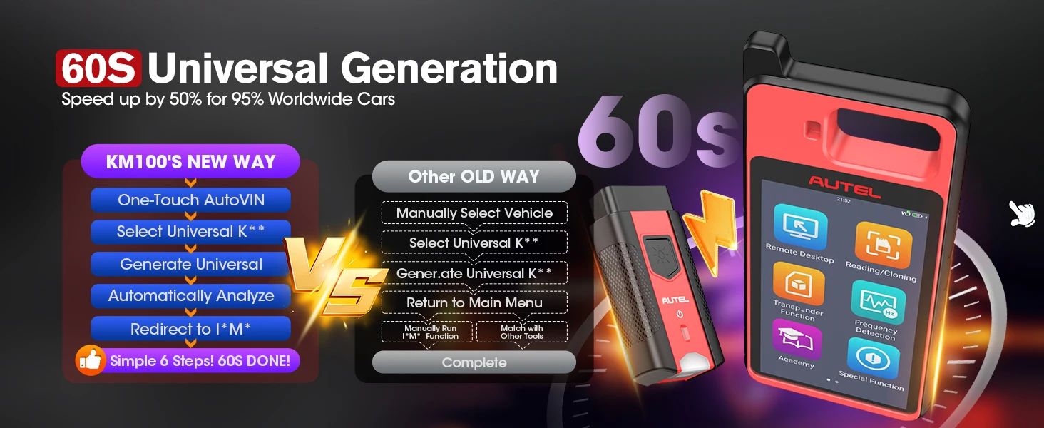 • Programs Autel’s IKEY universal key as smart key replacement for more than 700 vehicles