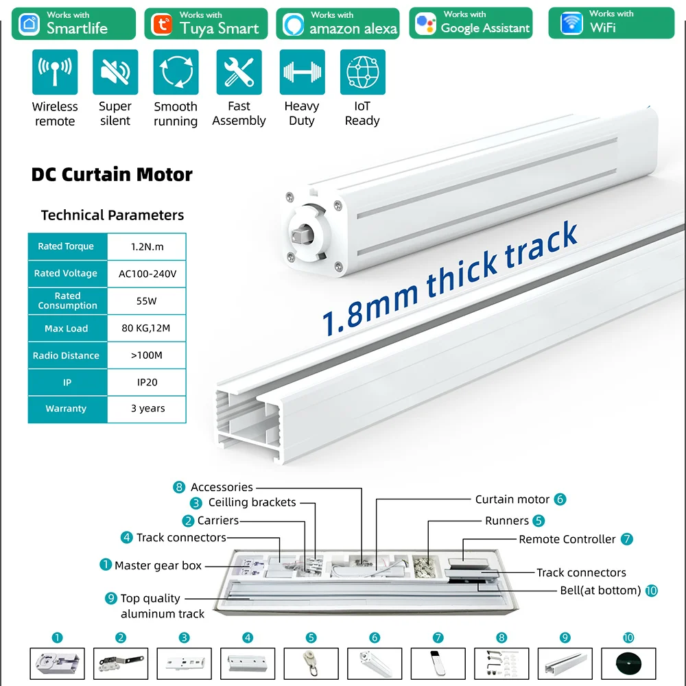 Smart Tuya WiFi Curtain Motor DIY Kit (Including Track, Accessories & Remote Control)