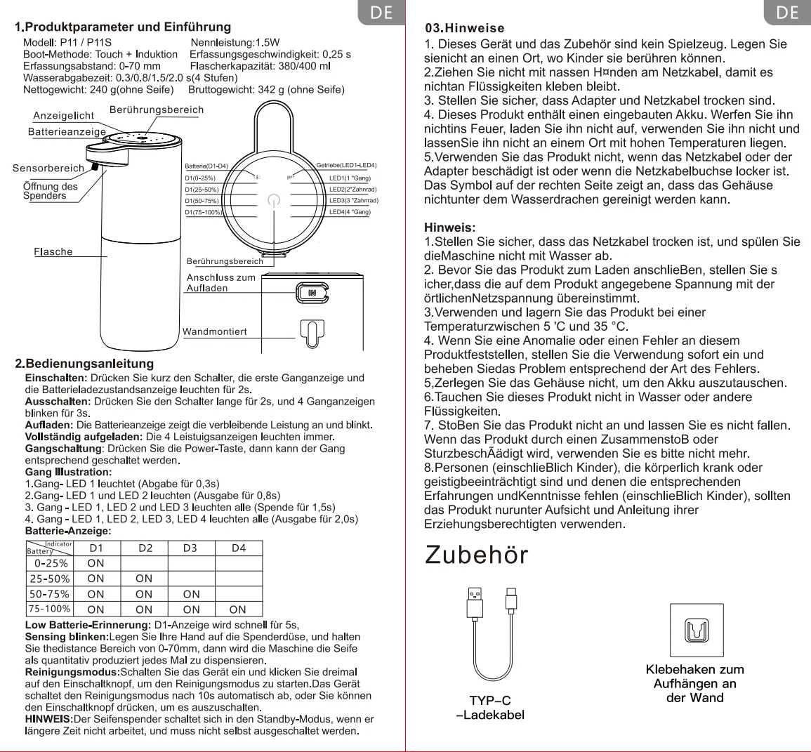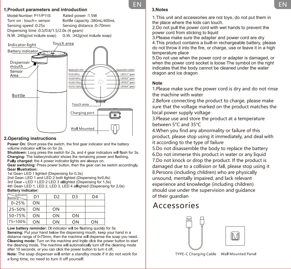 - Liquid Soap Dispenser Type: Automatic Soap Dispenser