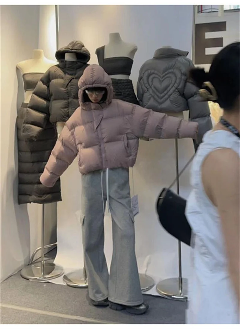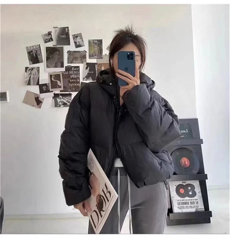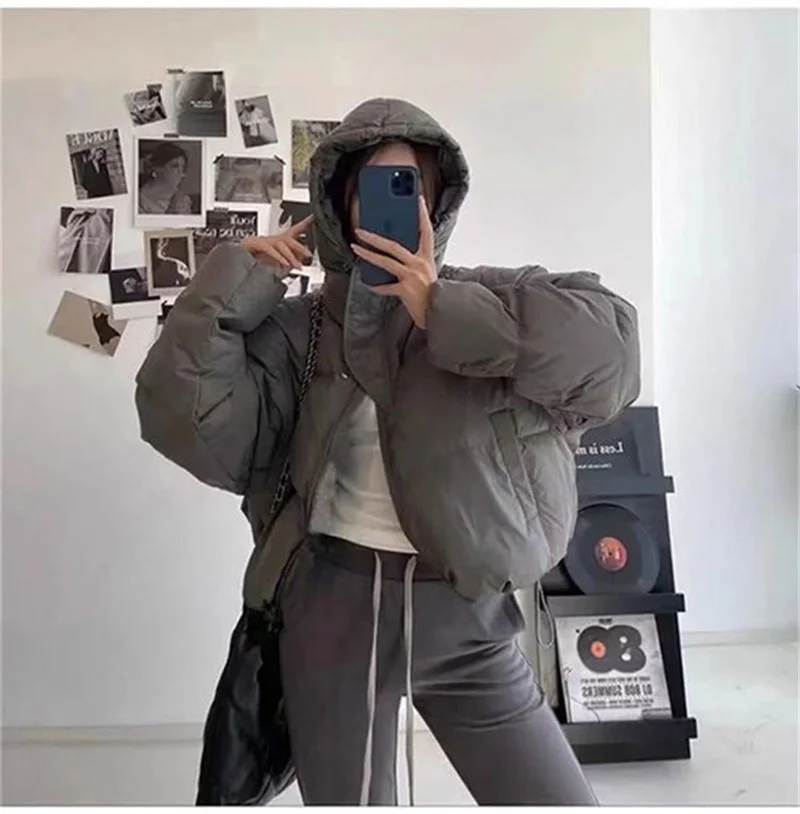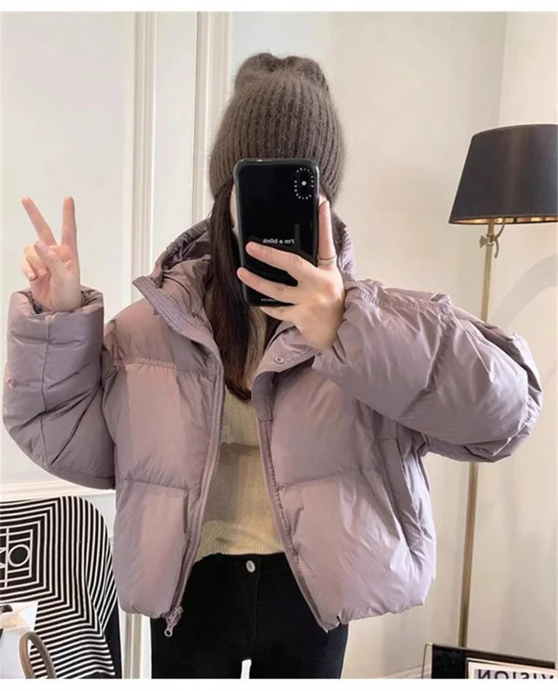 Autumn Winter Casual Parkas Women Fashion Down Cotton Jacket with Hood Warm Oversize Thick Solid Short Puffer Outwear Female