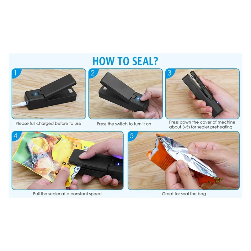 Rechargeable Convenience: Equipped with a rechargeable battery, this portable sealer offers the convenience of on-the-go use without the need for constant battery replacements. It’s eco-friendly and ready whenever you are.