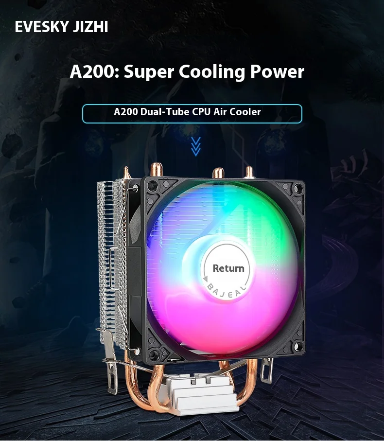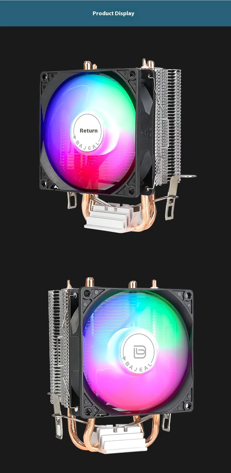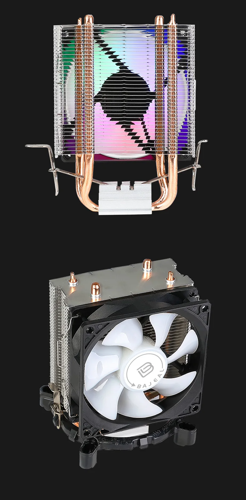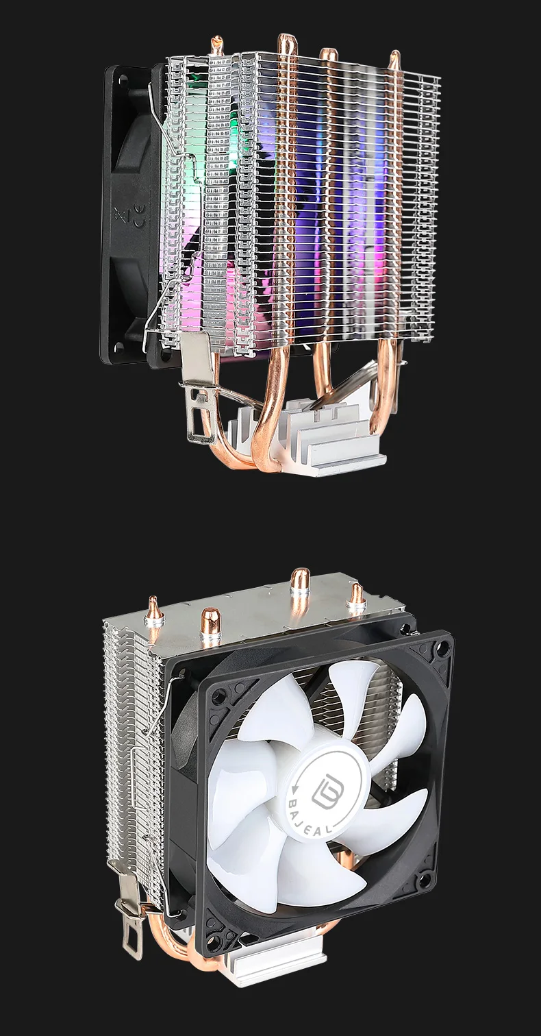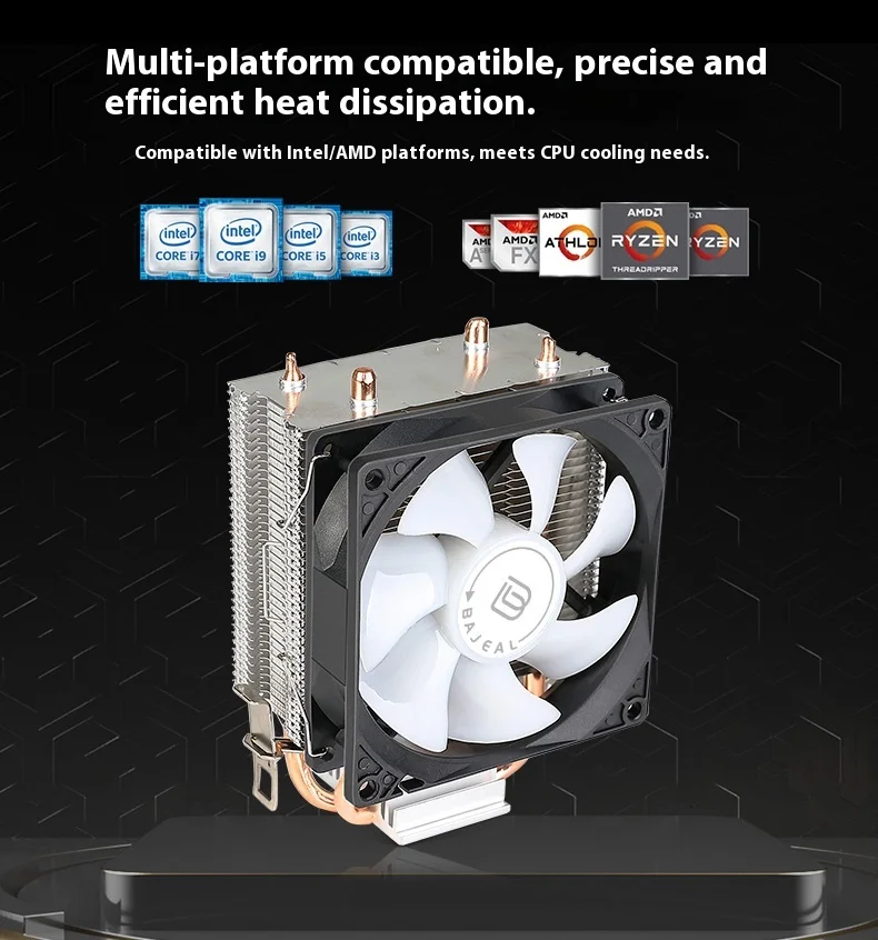 The Bajeal CPU Cooler supports Intel 1155 and AMD Multi-Platform, ensuring wide compatibility for various computer hardware.