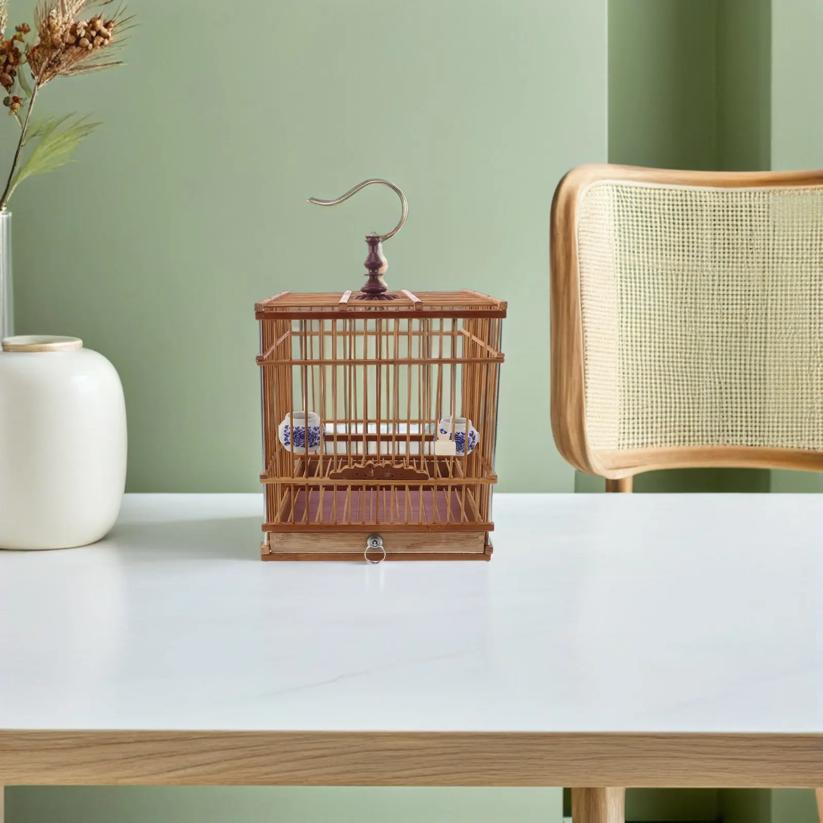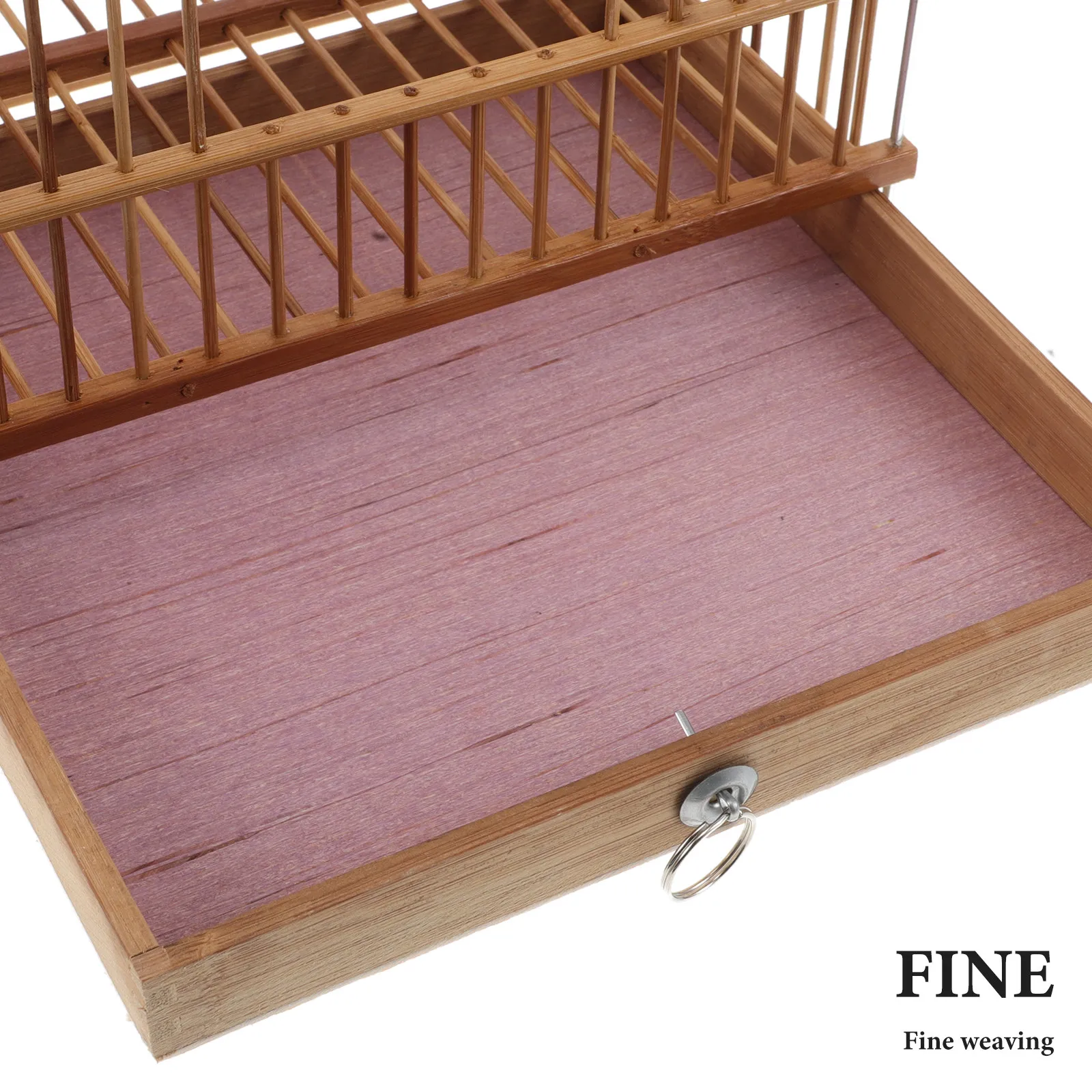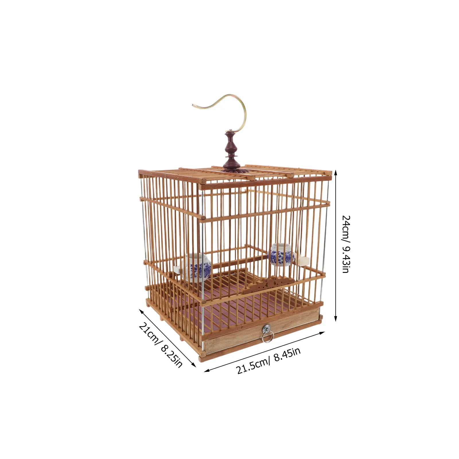 Bamboo Bird Cage Handmade Rectangular Carbonized Purple Hanging Hook Birdcage for Small Birds Finch Goldfinch Balcony Garden