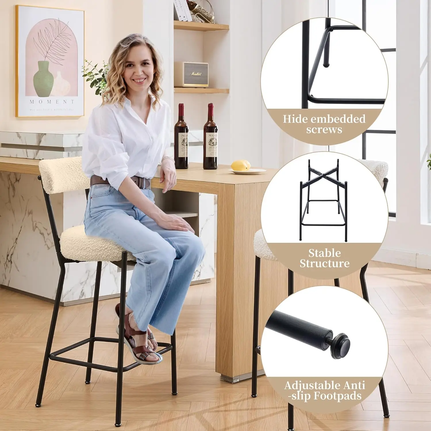 Sturdy Metal Legs: Crafted with durable metal legs that support up to 300 lbs, ensuring stability and long-lasting use.