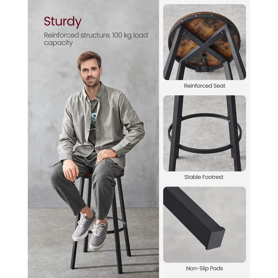 Rustic Style With a rustic brown surface, black steel frame, and rivet accent, these industrialstyle high stools are perfect for your bar area, kitchen, dining room, and more