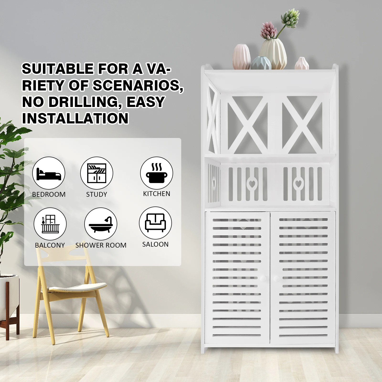 Home Organizer Helper: The slim freestanding bathroom cabinet fits perfectly in a tight space.The top compartment is great for holding a bottle of aromatherapy and exquisite flower.Put the things you want to display or easy to pick up on the second and third tier. The last tier has two doors,you can store some sundries.