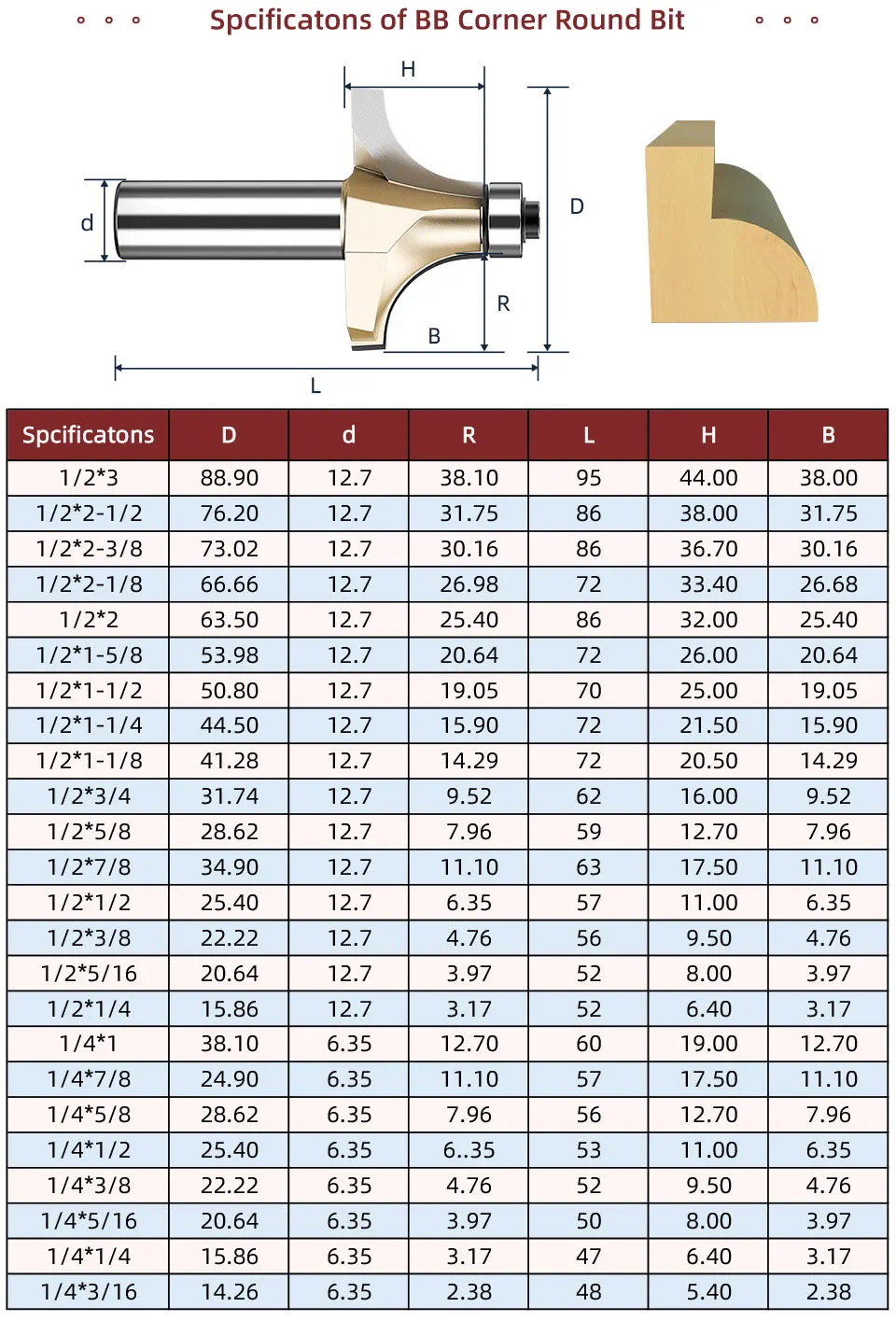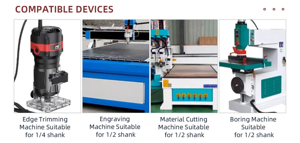 (1). Woodworking router bits are designed for handheld and benchtop woodworking carving machines and should not be used on equipment such as electric drills or drill presses.