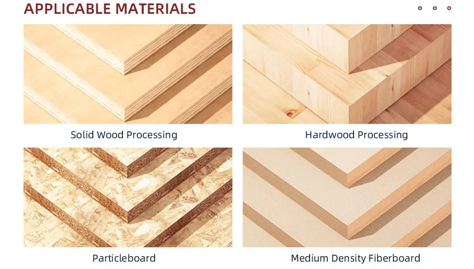 Suitable for cutting solid wood boards, particle boards, MDF, medium-density fiberboard, etc.