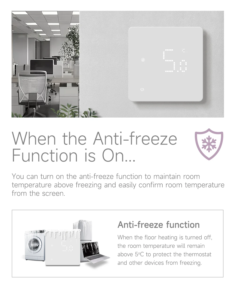 Tuya Smart and Smart Life App control, allowing you to control your thermostat no matter where you are.