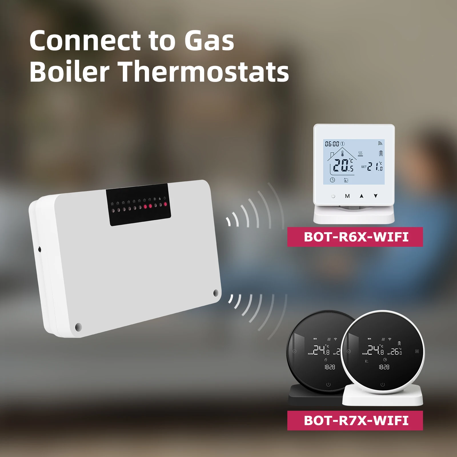 The thermostat is connected to each zone of CCT-28-X via RF.