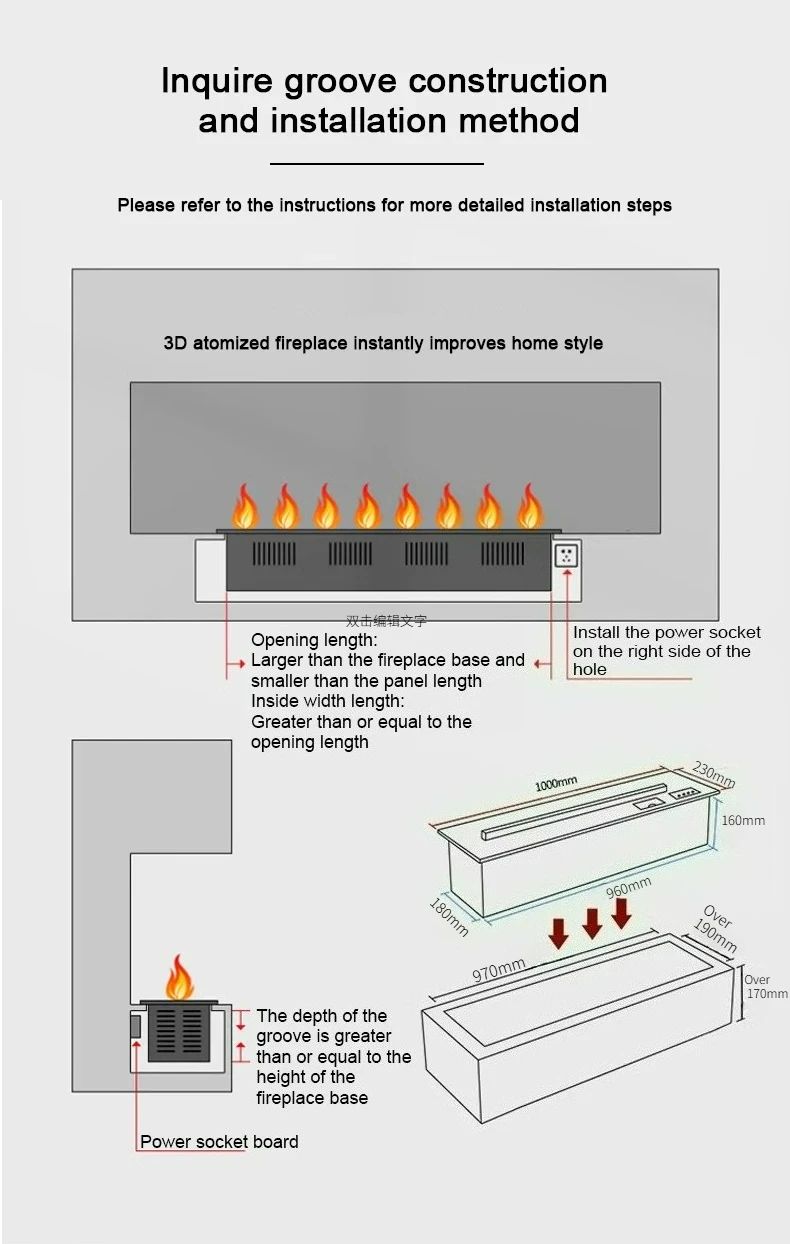 The 3D decorative fireplace does not look special beforeit is turned on.When started, the water vapor ignites thefire in the fireplace,making the whole fireplace lively and vibrant and the safe flame life like. Low temperature simulation flame need not be careful children touch, very safe.This is also a goocpartner for decoration companies.
