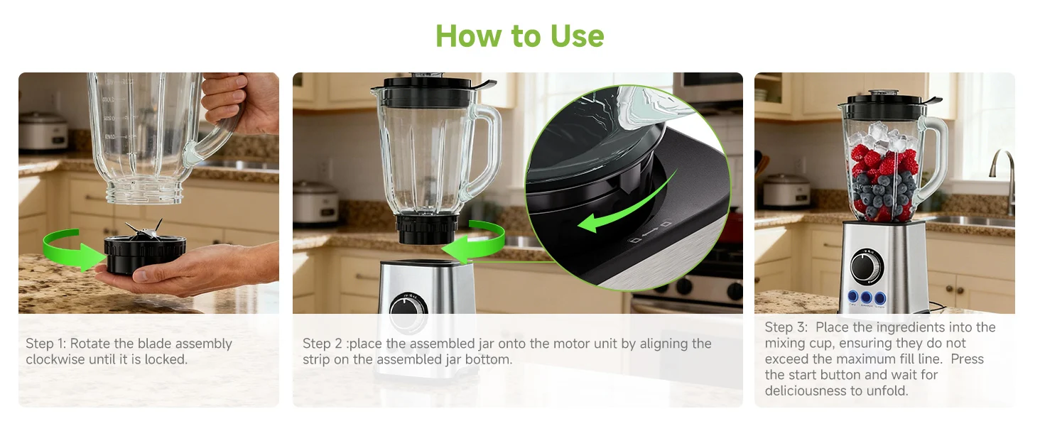 5.Safety First – Features include auto-shutoff, a non-slip base, and locked operation when the lid is in place.