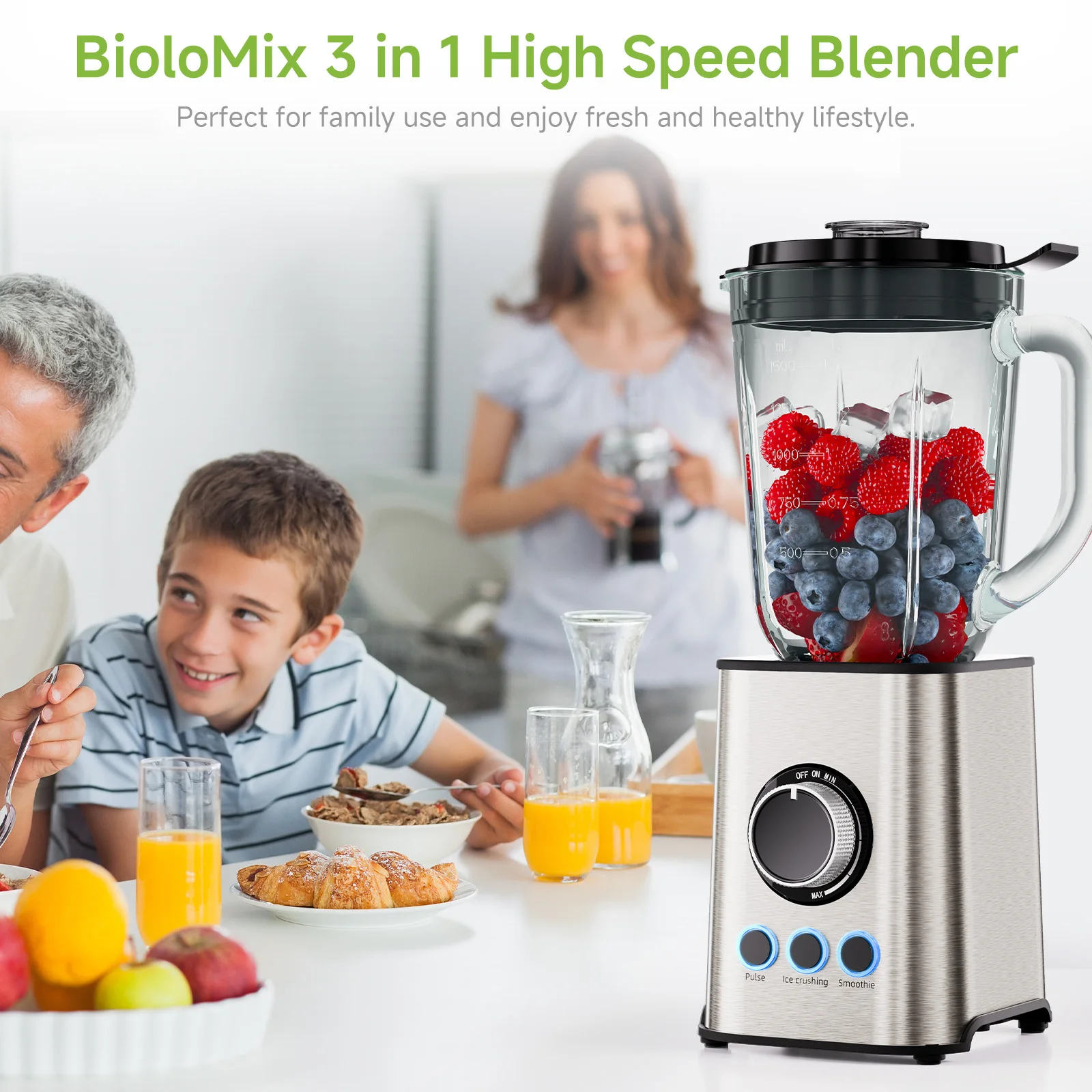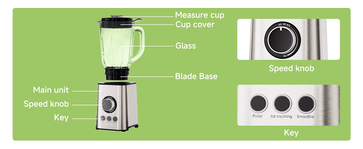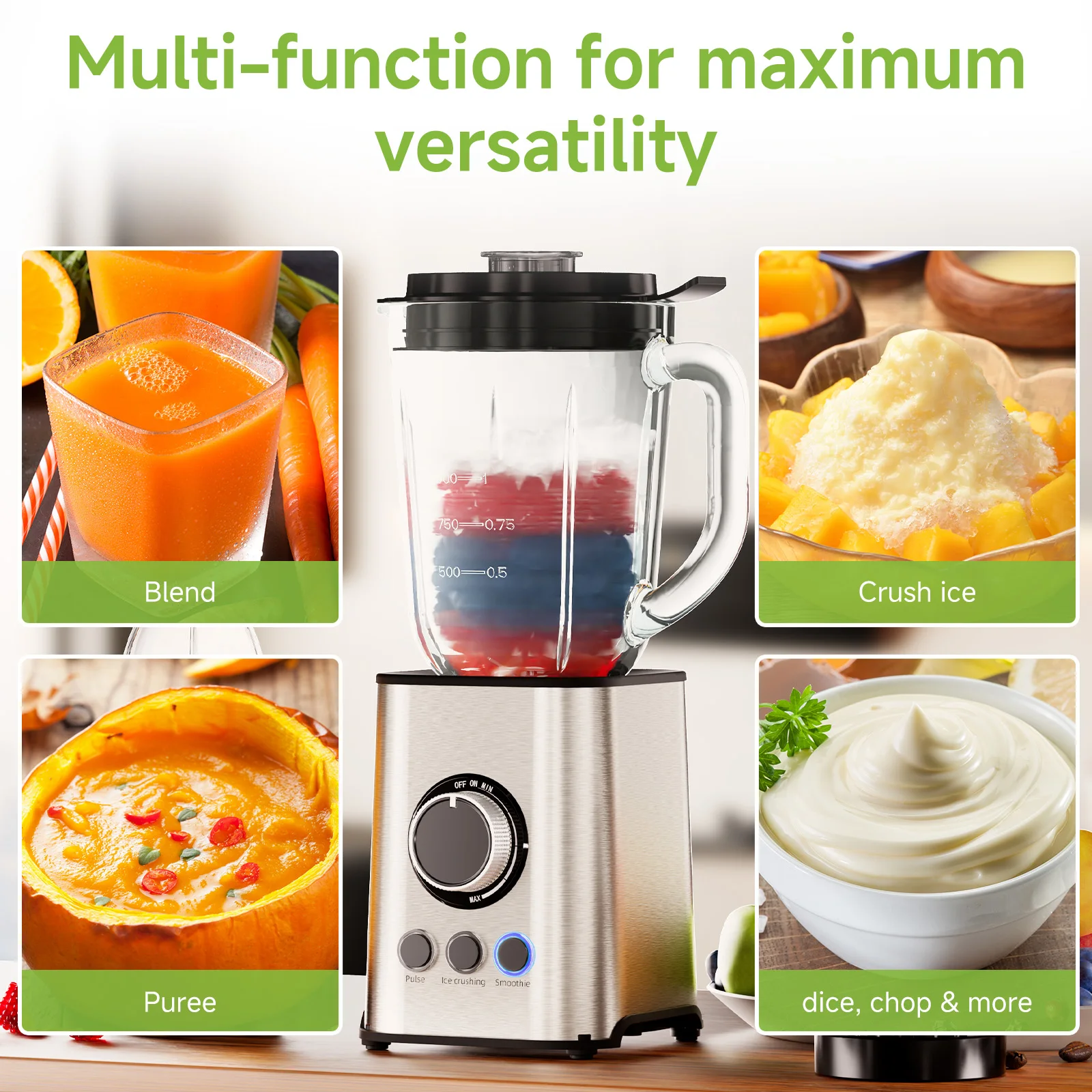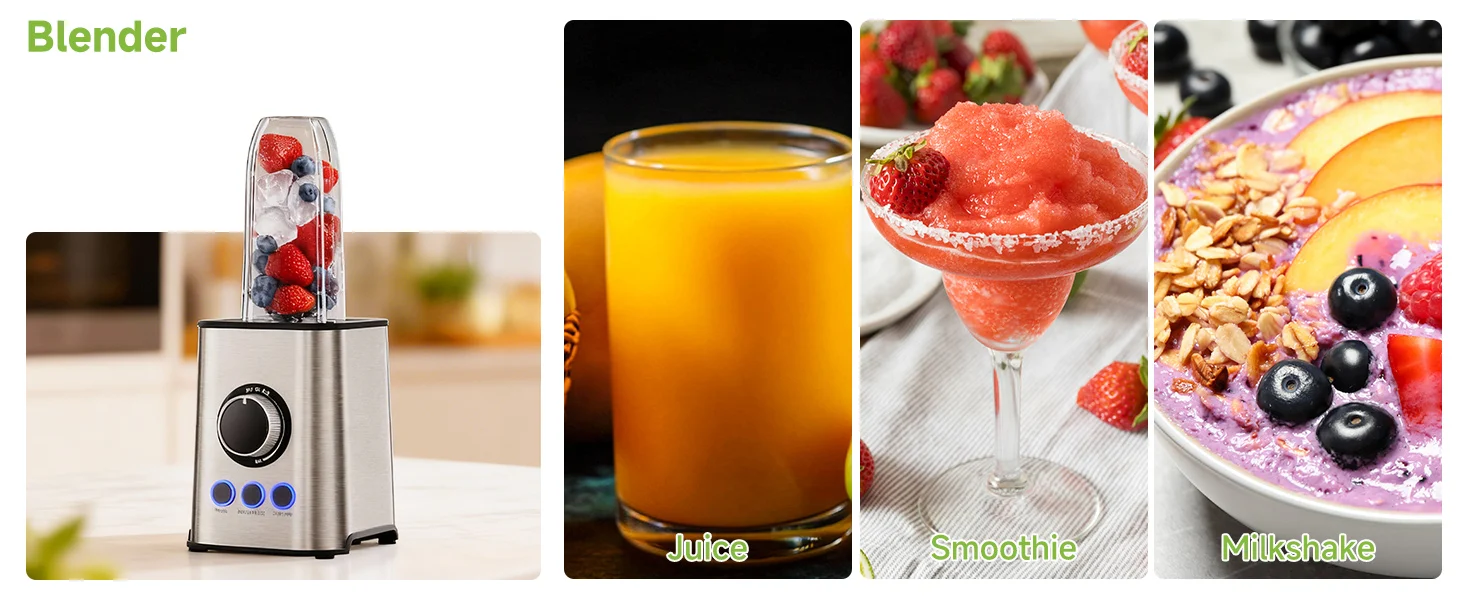 1. POWERFUL & EFFICIENT: With 28000PRM high speed, 1300W push-to-blend motor base of smoothie blender powers through everything in the cup for the best blending.