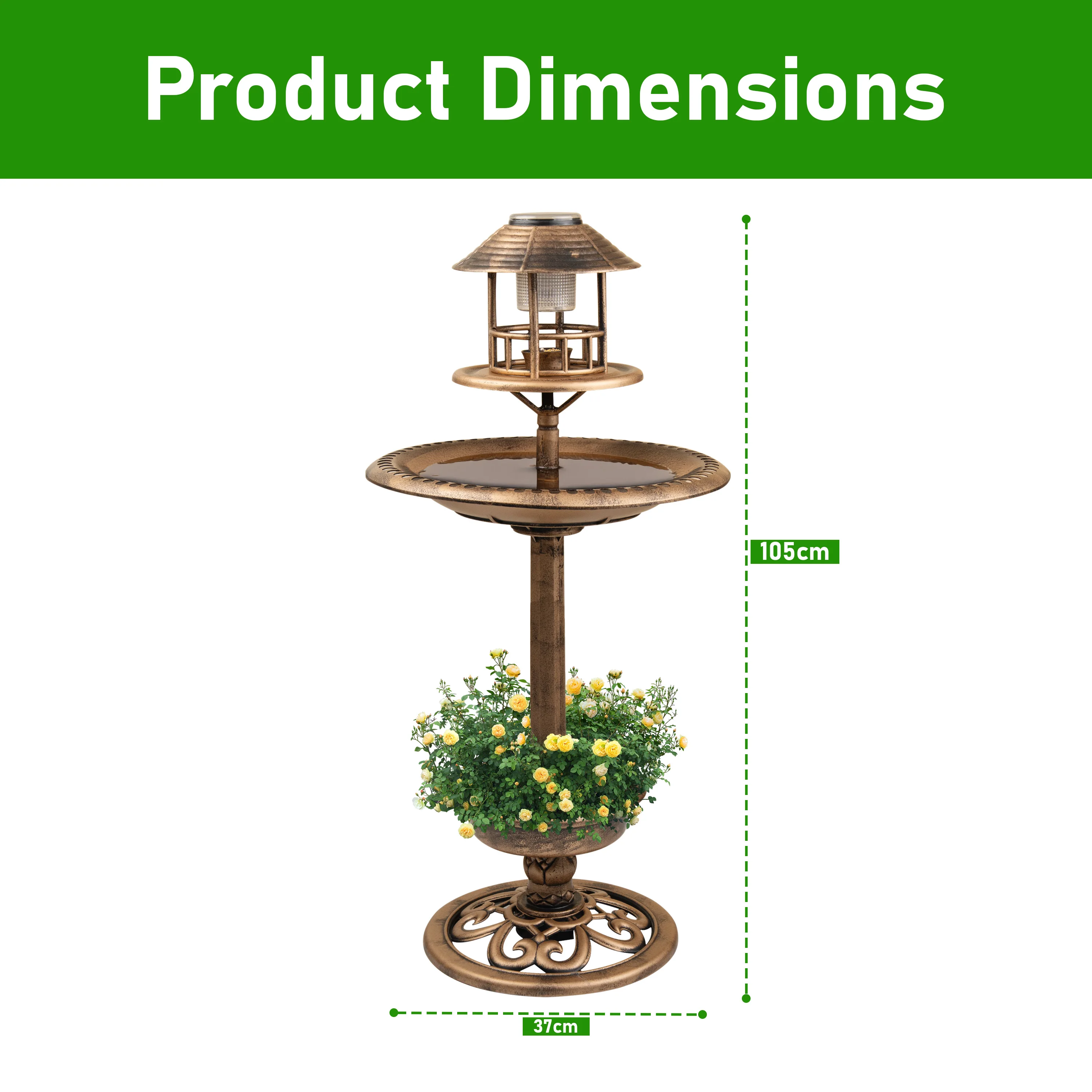 Bird Bath & Feeder With Solar Power Light Garden Ornamental Birds Table Station