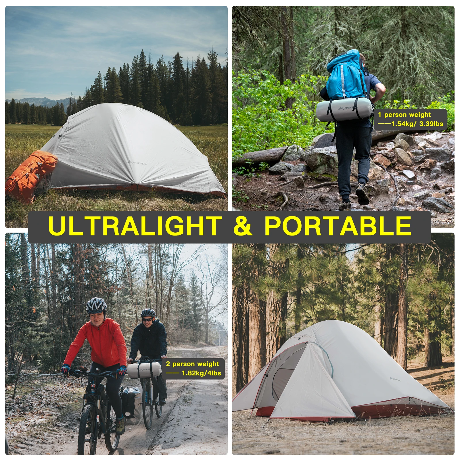 • Ultralight Weight :Weighing only a few pounds, this tent is perfect for backpackers and hikers who need to pack light.