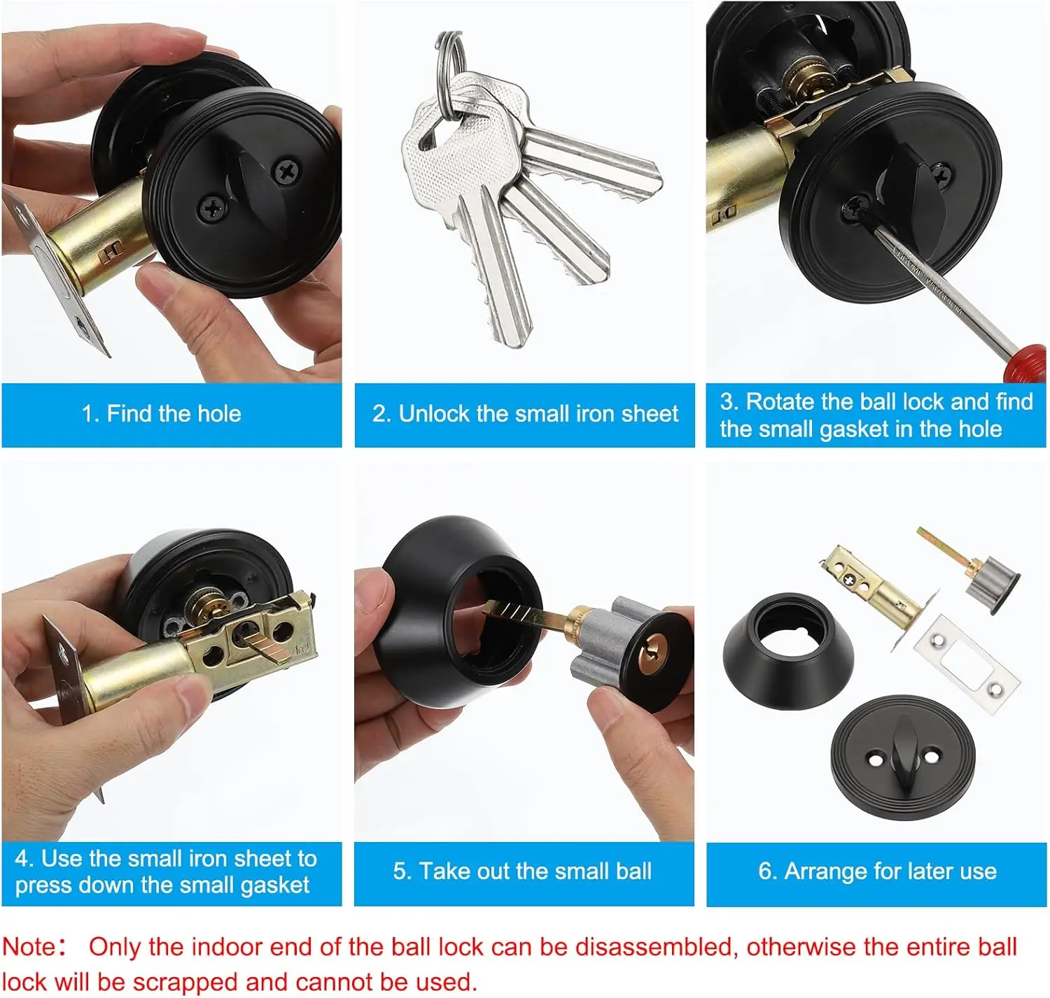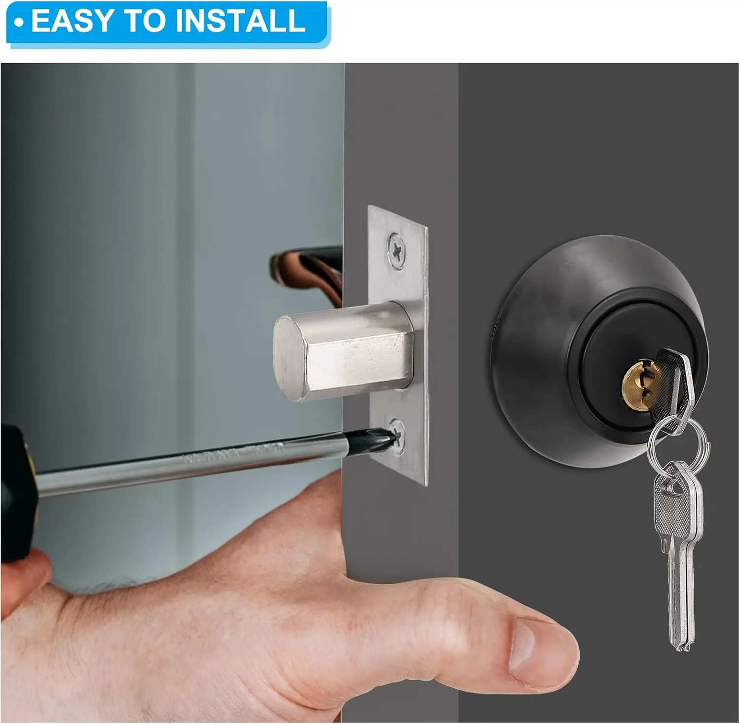 Simple Setup: Straightforward to install as all necessary components are provided (deadbolt, latch, strike plate, screws, keys). The uncomplicated installation process allows for a solo project.