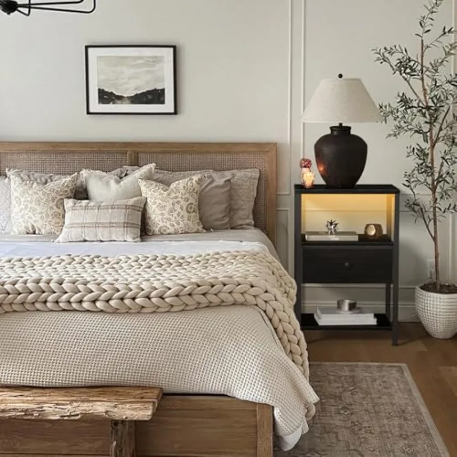 Nightstands Set 2 with Charger: Add 2 AC outlets and 2 USB ports, more charging spots for bedtime, plug in your phones and turn on your lamps. 5.9 ft power cord for enough use