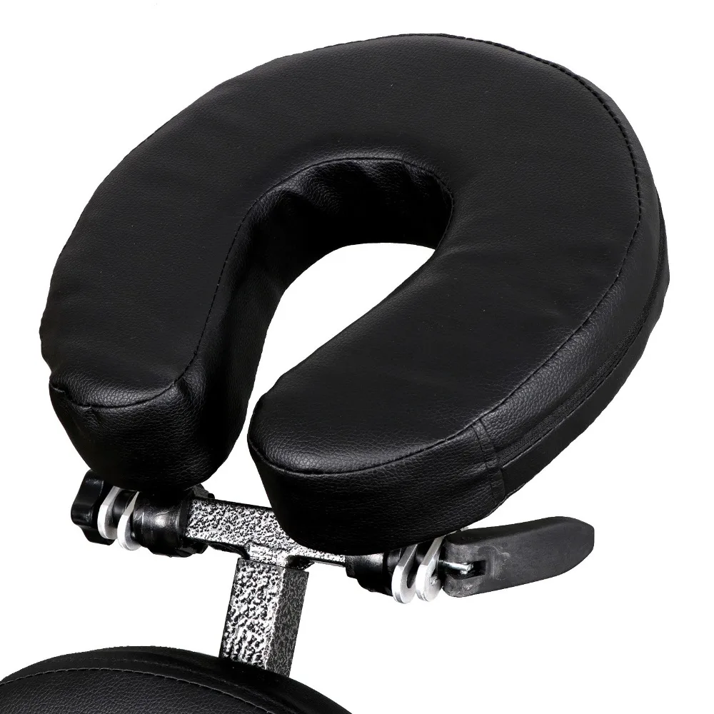 Silla de masaje portátil de diseño compacto que es ligera y fácil de configurar para usar. Con su soporte ajustable para la cabeza, reposabrazos, almohadilla para el pecho y asiento, puede darse a sà mismo o a sus clientes un momento bastante tranquilo de relajación y disfrute. Y la superficie de cuero PU resistente al agua y al aceite lo hace duradero y cómodo. No solo es perfecto para uso personal sino también para uso comercial. Viene con una bolsa de transporte, lo que hace que ahorre espacio y sea fácil de almacenar.