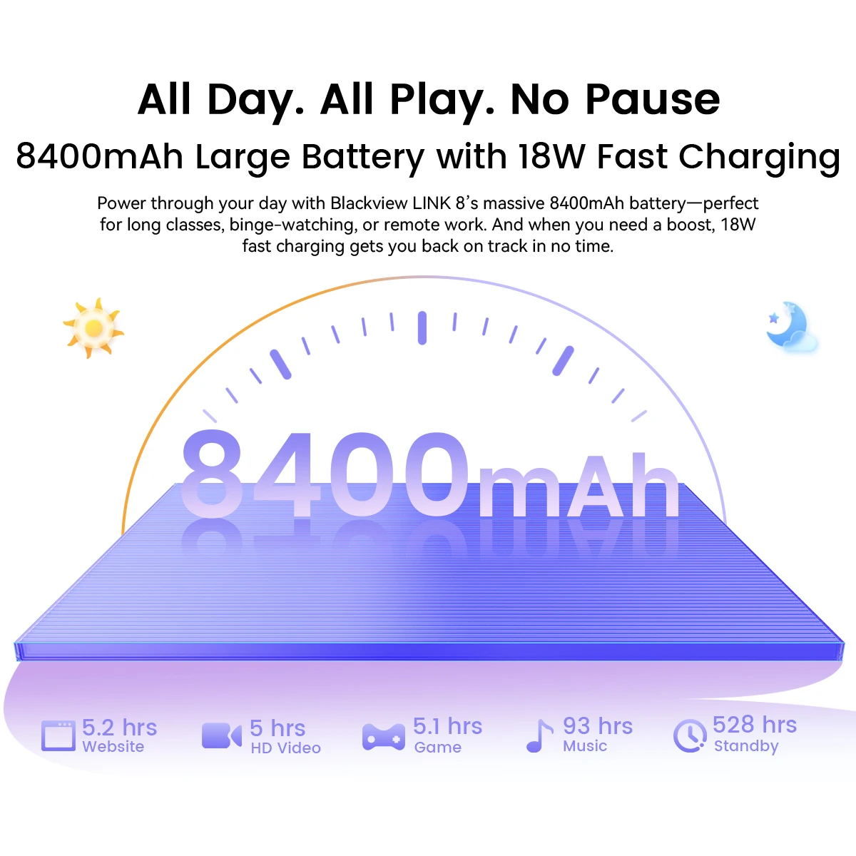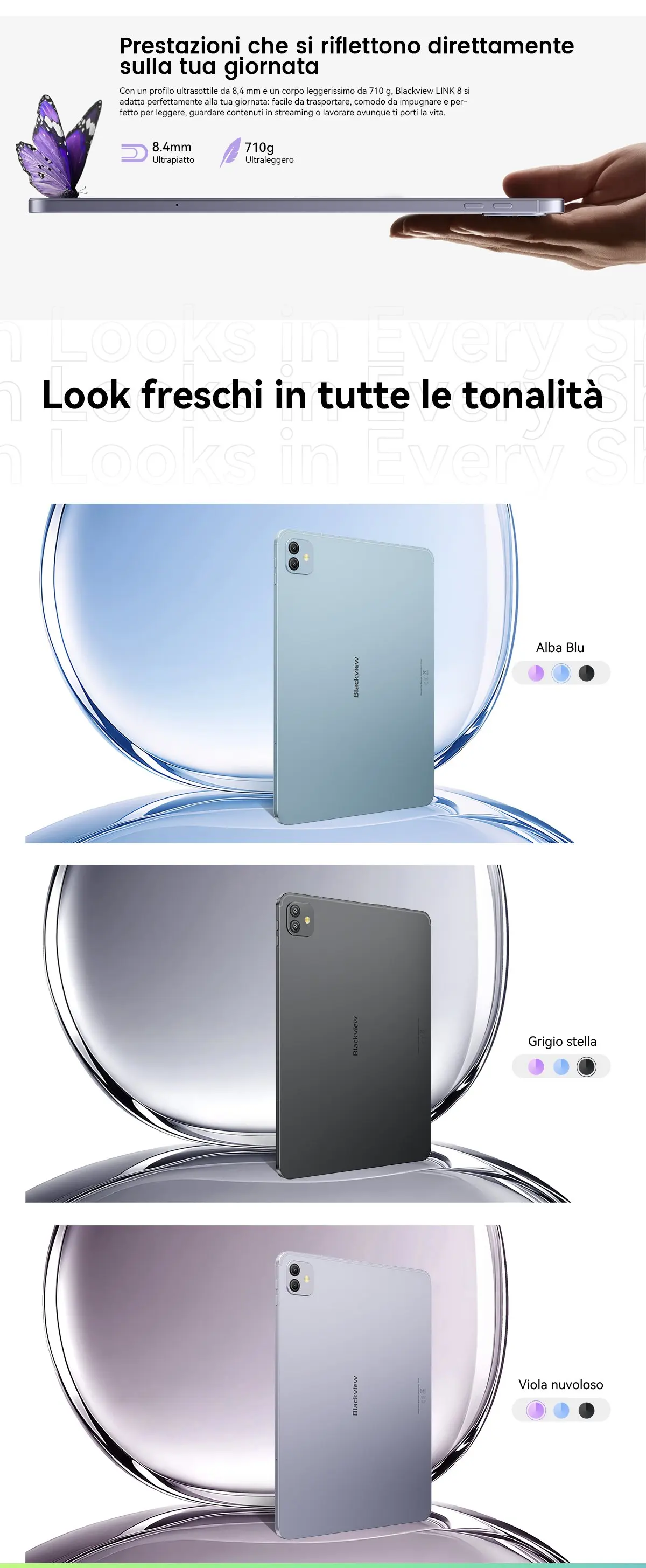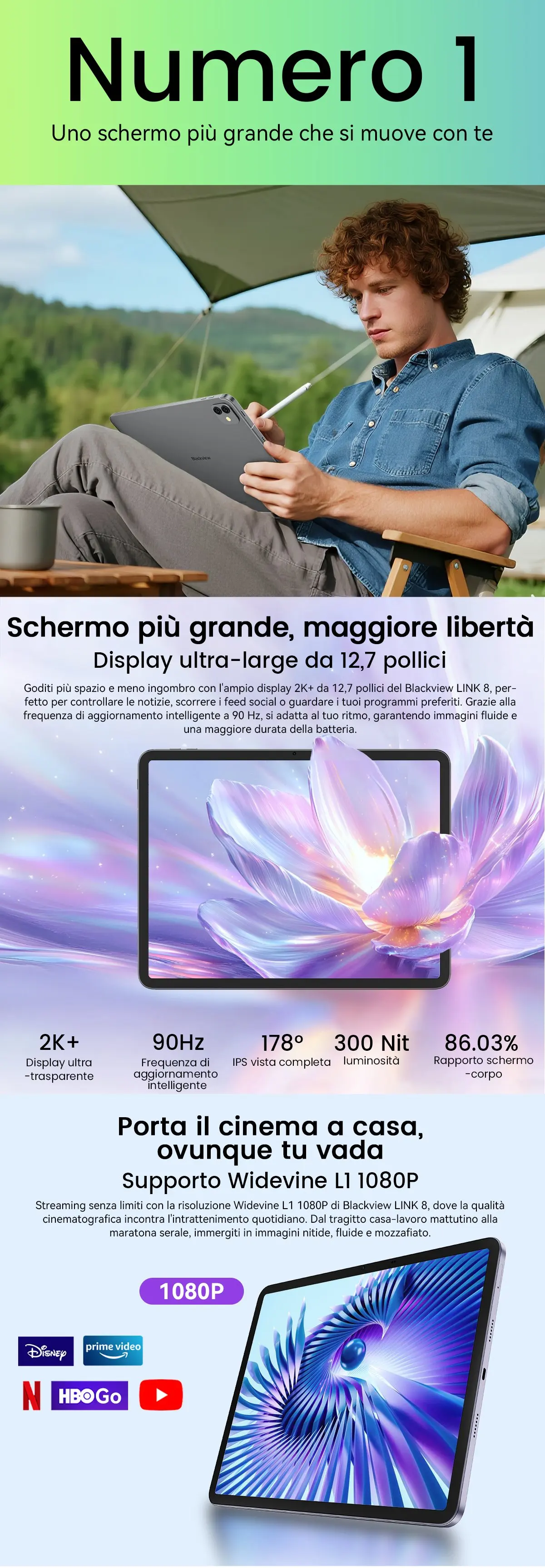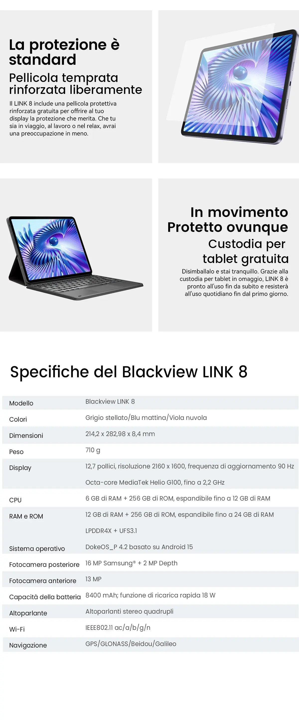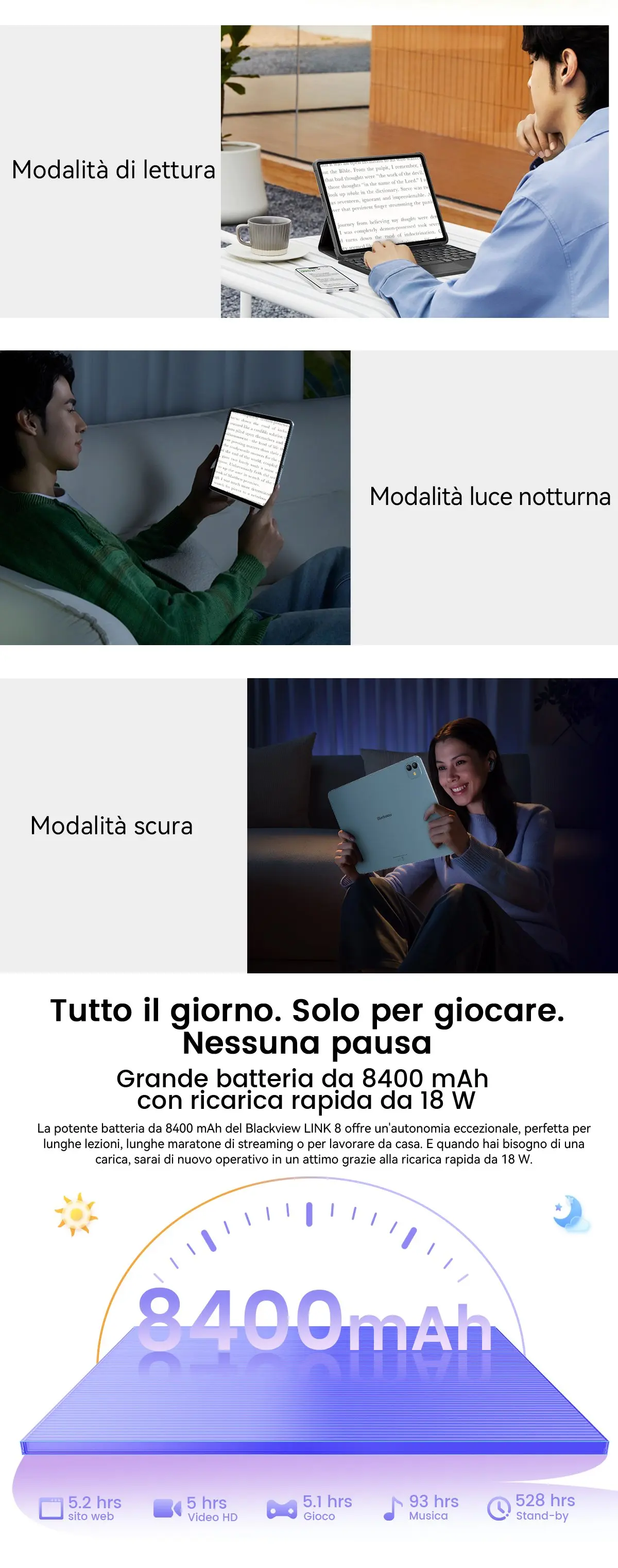 Capacità della batteria:8400 mAh; Ricarica rapida da 18 W
