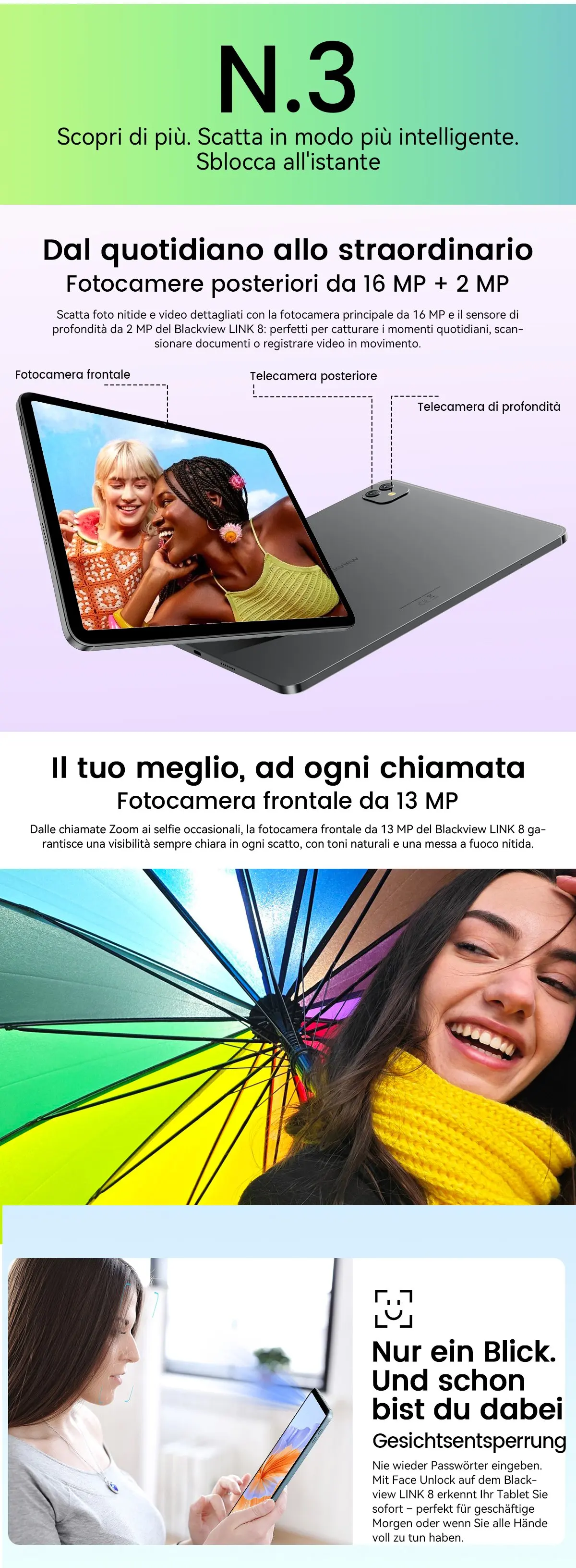 Fotocamera posteriore:16 MP Samsung® + 2 MP di profondità