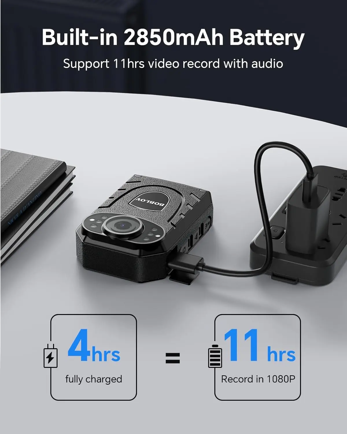 1296P BOBLOV Body Camera, 8-10Hours Recording Police Body Camera, Clear Night Vision