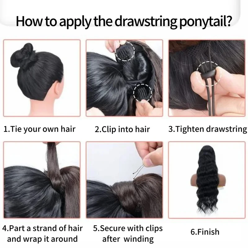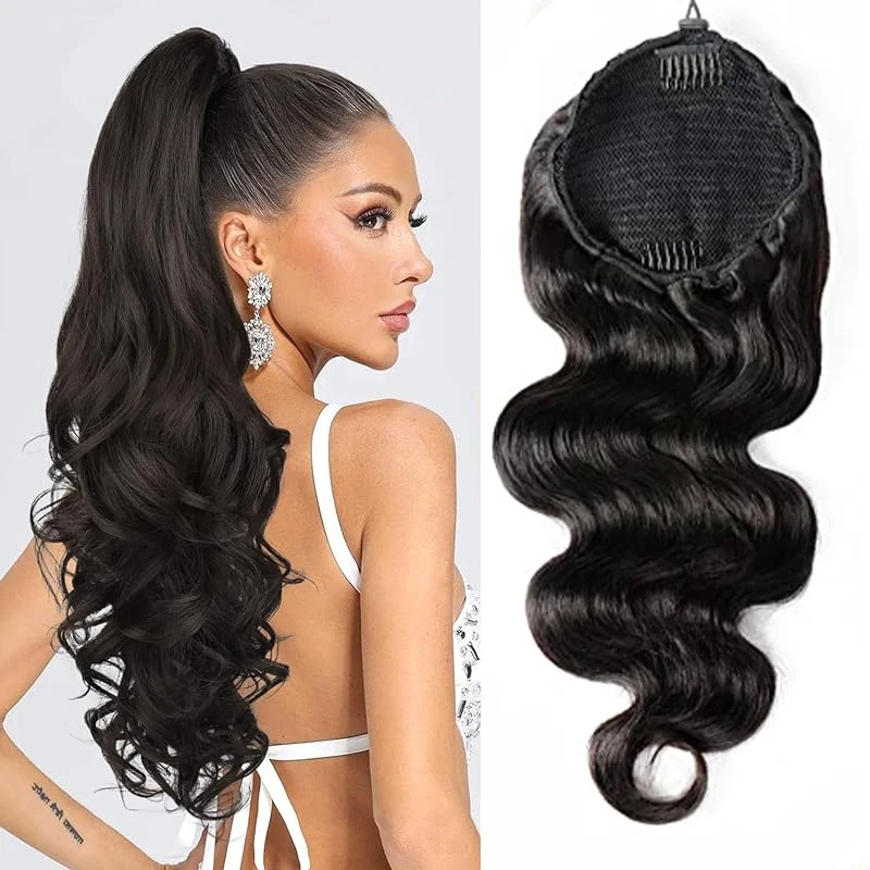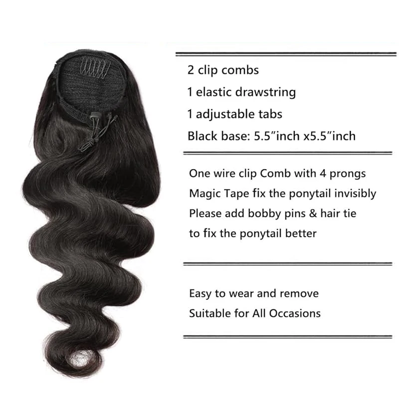 Body Wave Drawstring Ponytail Human Hair Extensions Clip In Curly Brazilian Human Hair Extensions For Women #1B