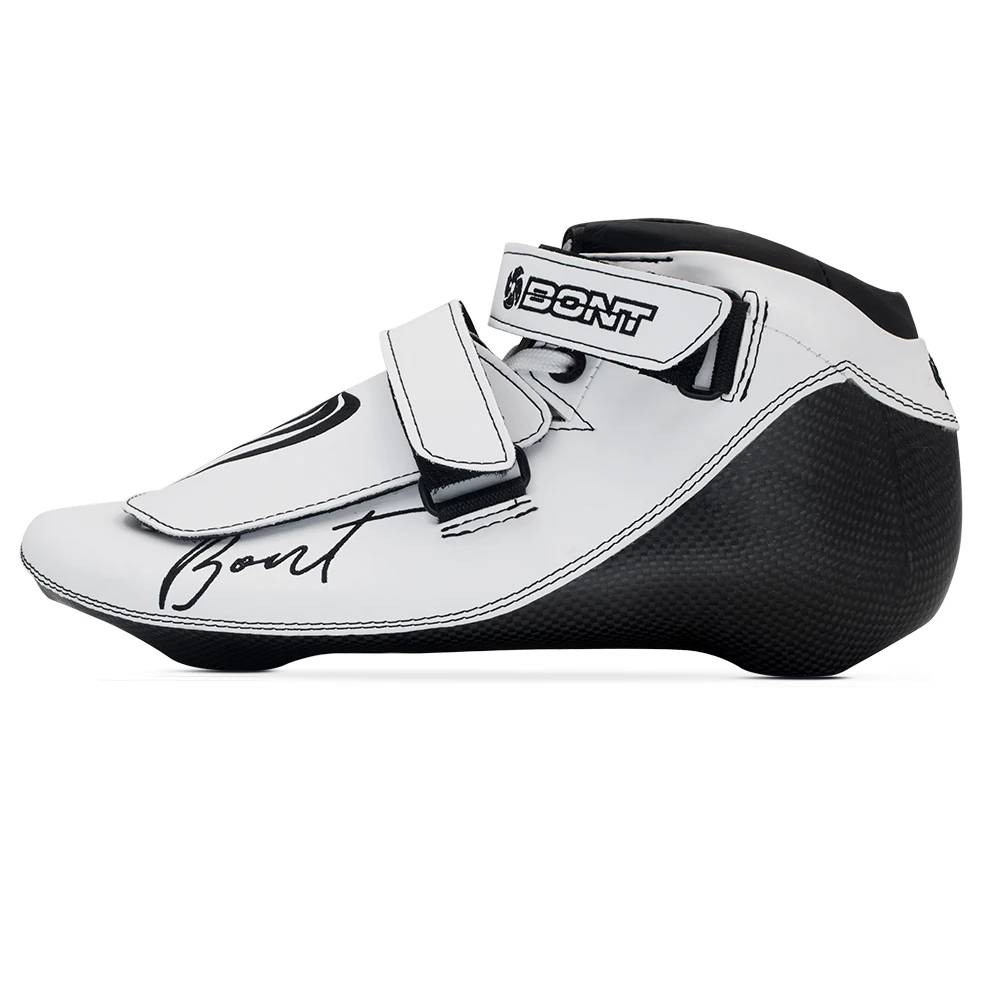 The Bont Short track speed skating ST BNT is made from 100% uni-directional carbon and has a durolite upper. It is extremely light weight and comfortable. Available in many color options, email us for a full list. *Note, this boot size 3.5~10.5 will be made with 165mm Separation.FeaturesBase: 100% carbon with uni directional carbon and matte finishOuter skin: DuroliteLiner: Suede-LPitch: 12mmInnersole: LeatherHeat moldable:Fully heat moldable base utilizing epoxy thermoset resinPadding: High density memory foamClosing options: Two straps , Wax Laces and ace coverFit options:Standard, narrow and wideCan be ordered custom made at additional cost