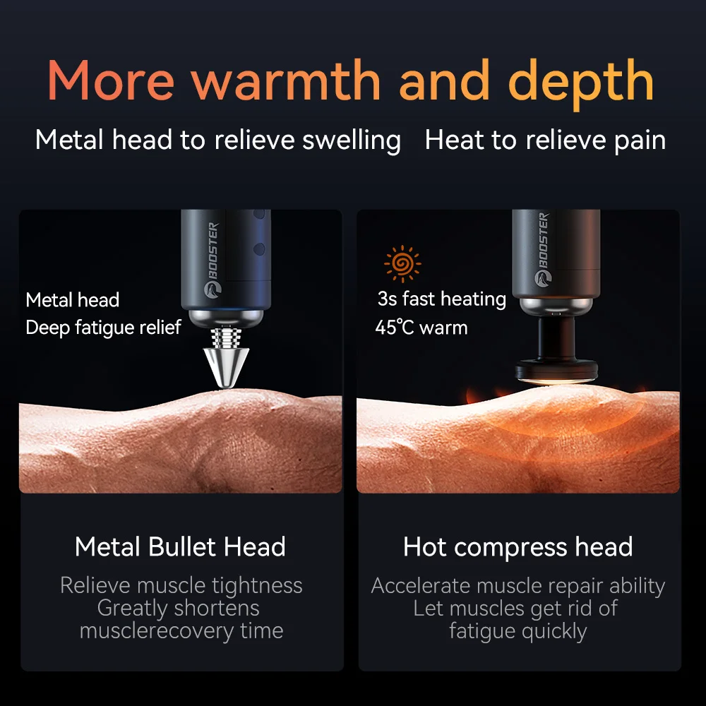 Excellent product. Tested against the smaller booster model and against terragun. It is more versatile and goes on the soft mode with more effect that both other models. Terragun is still more powerfull but noisy and too deep to massage properly the back or sensitive muscles. A extra point of the excellent heating head included.