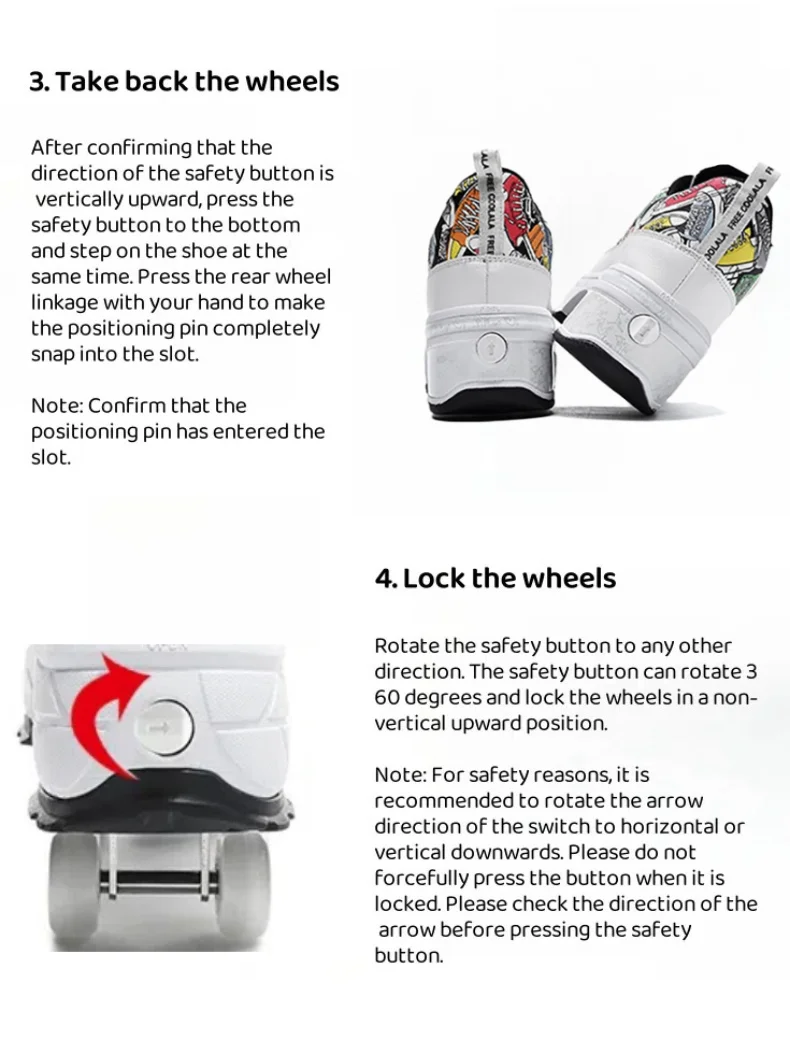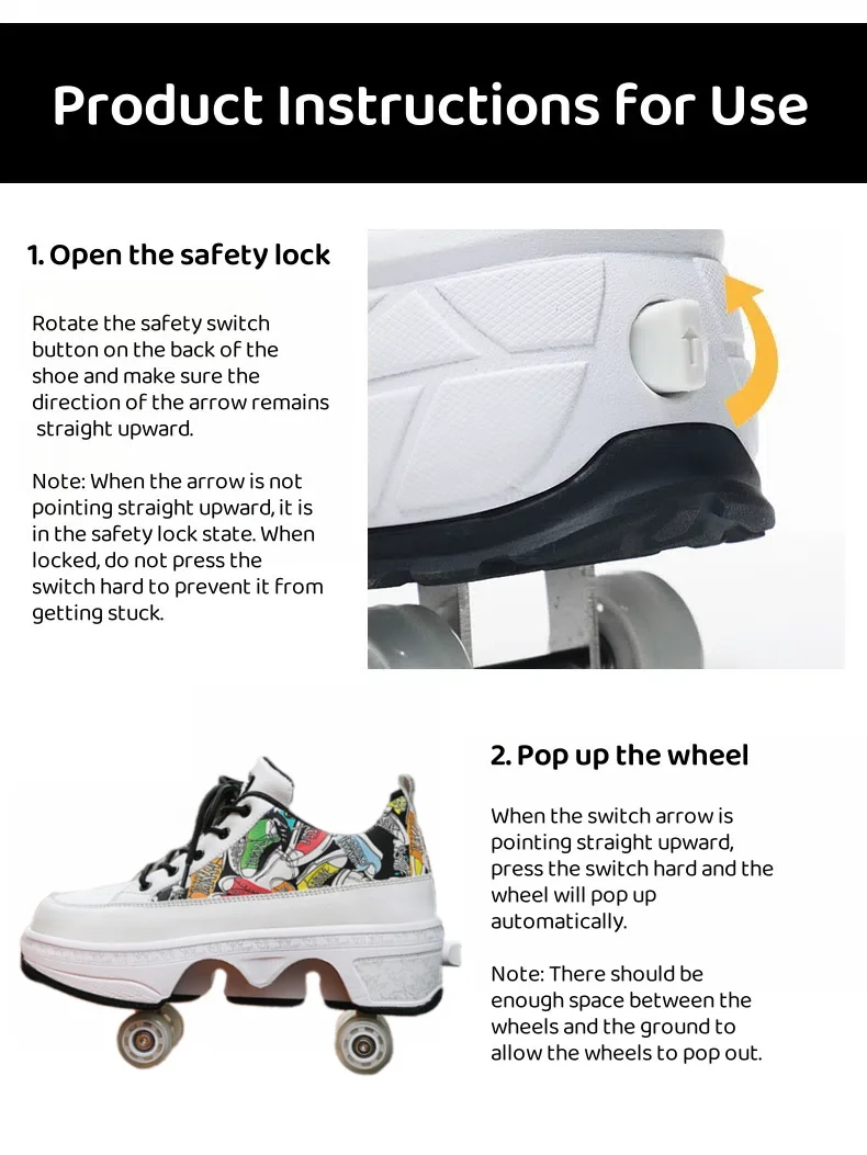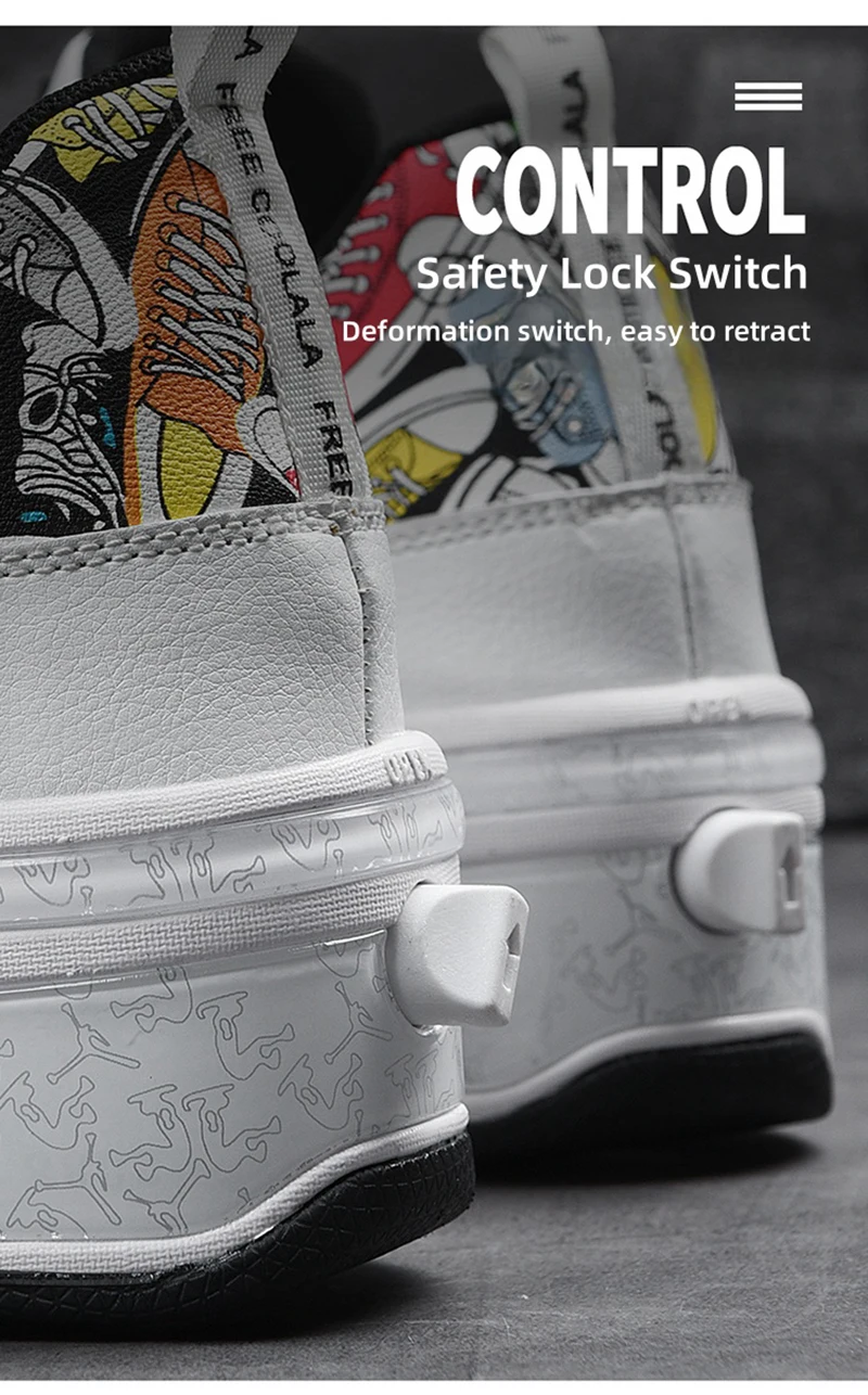 The shoes are equipped with a safety lock switch and adopt a deformation switch design, allowing skaters to easily retract and retract the shoes, improving the convenience and practicality of the shoes.