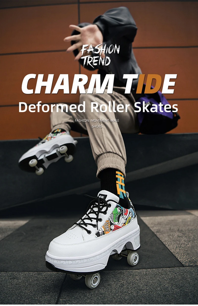 �� Put on our retractable skates and experience the thrill of skating. They go from regular shoes to roller skates in seconds, making them a completely multipurpose shoe, perfect for beginners and intermediate skaters.