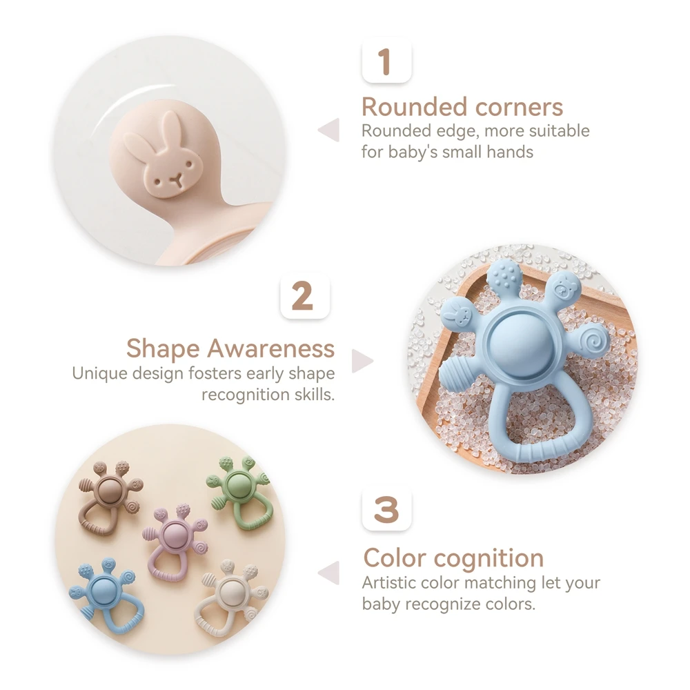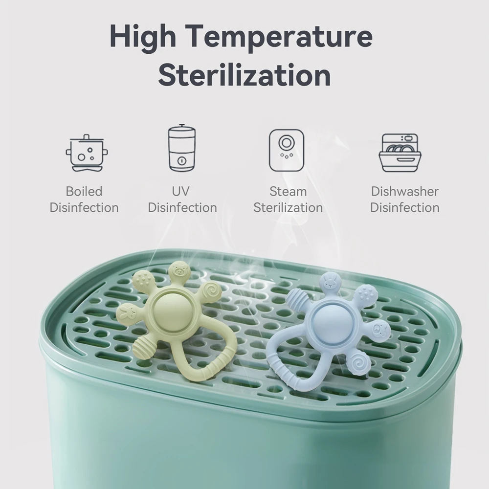 100% Safe & Baby-Friendly – Crafted from premium food-grade silicone, this BPA-free teether is CPC certified, phthalate-free, and gentle for daily chewing—perfect for infants, toddlers, and newborns.