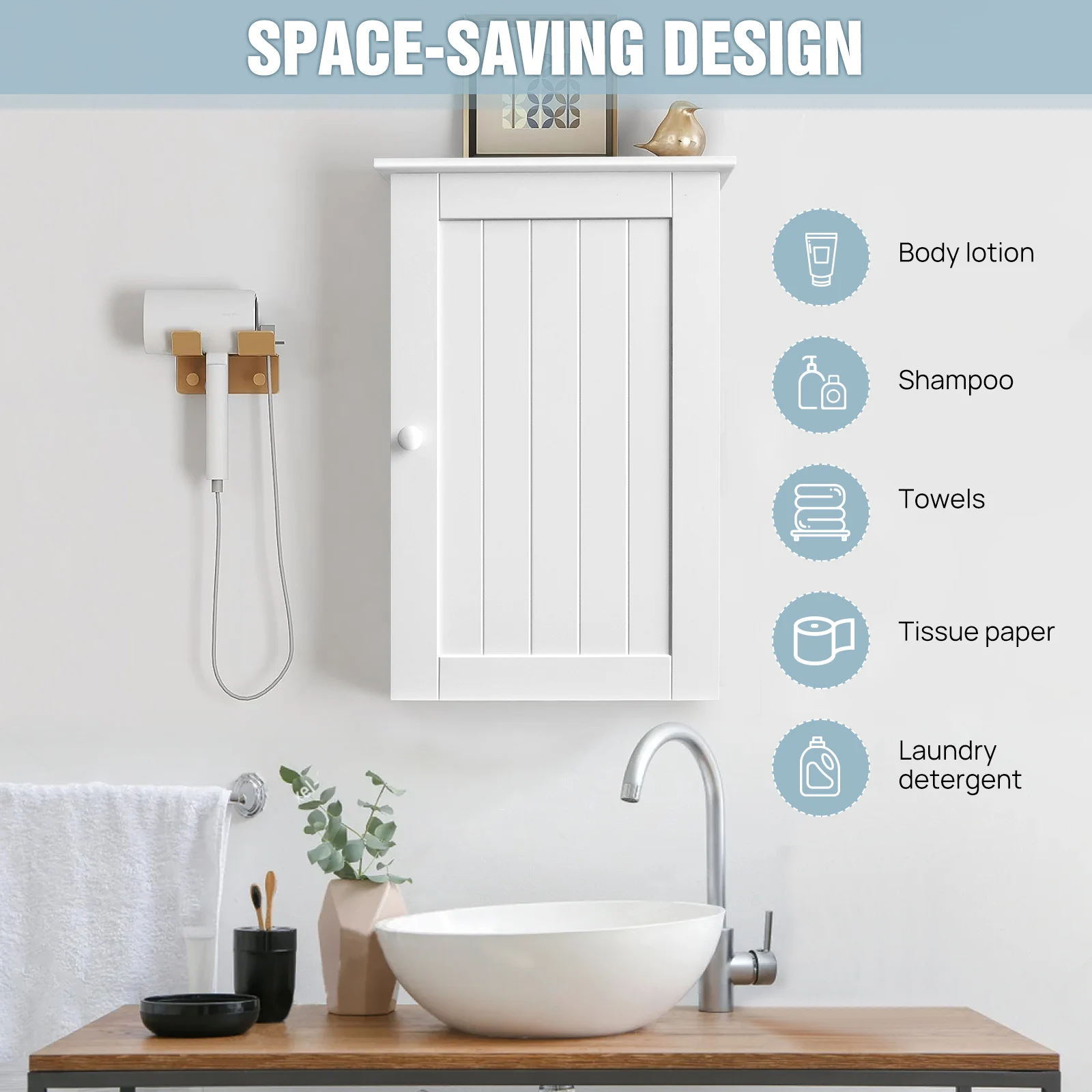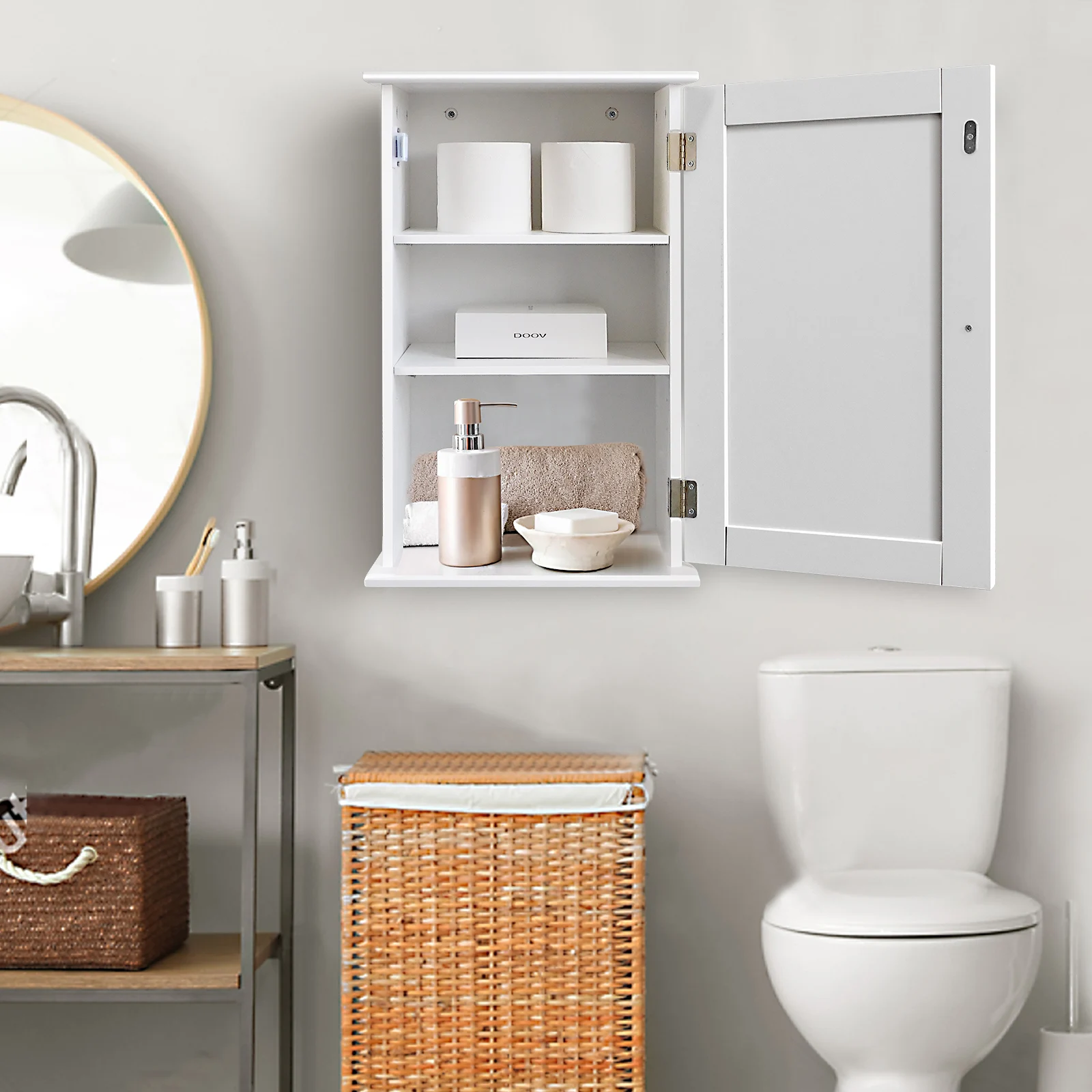 5. This wooden wall cabinet is versatile. Besides in the bathroom, it can also be installed above the toilet to add extra space. In the office, kitchen, bedroom, living room, etc., it brings more convenience to your life.