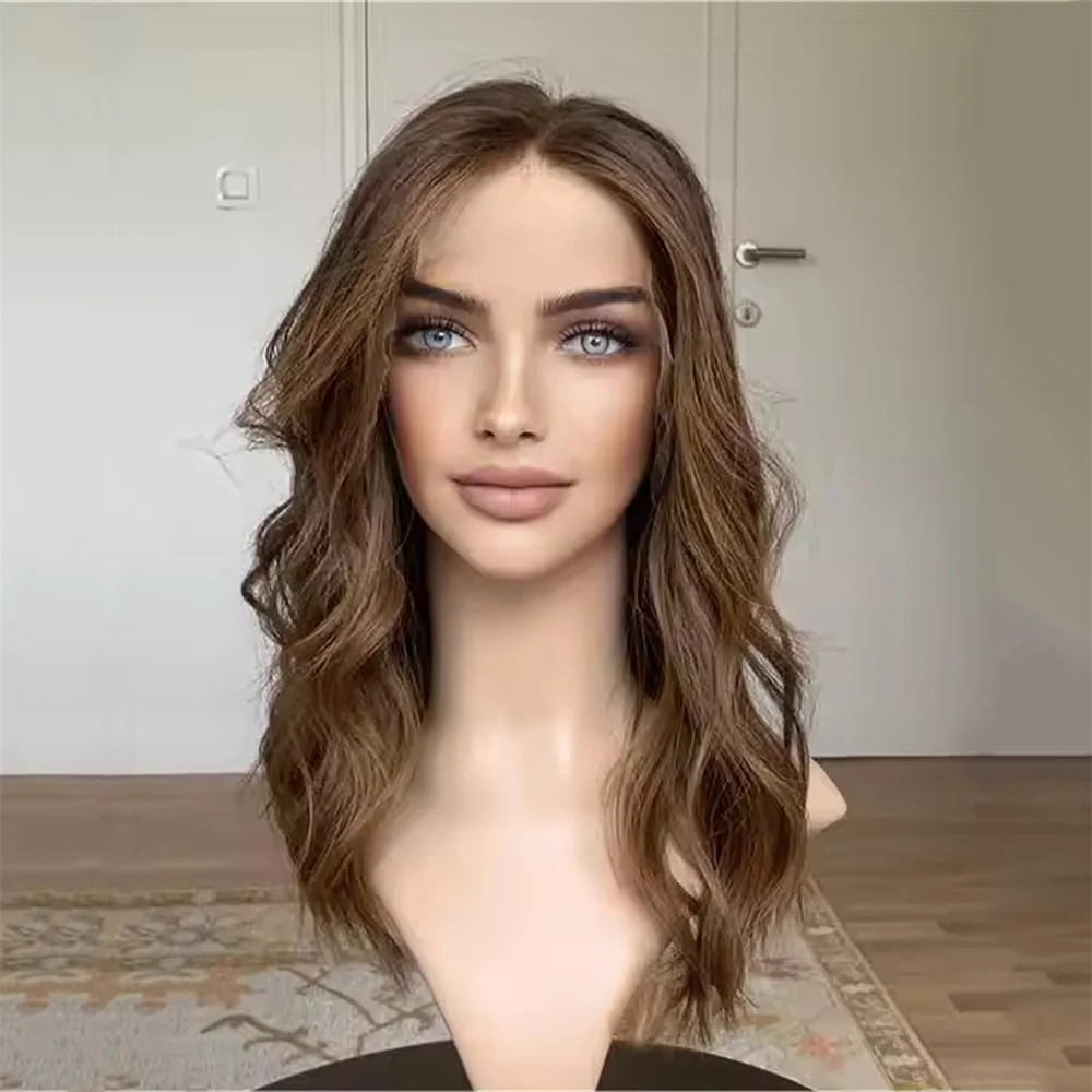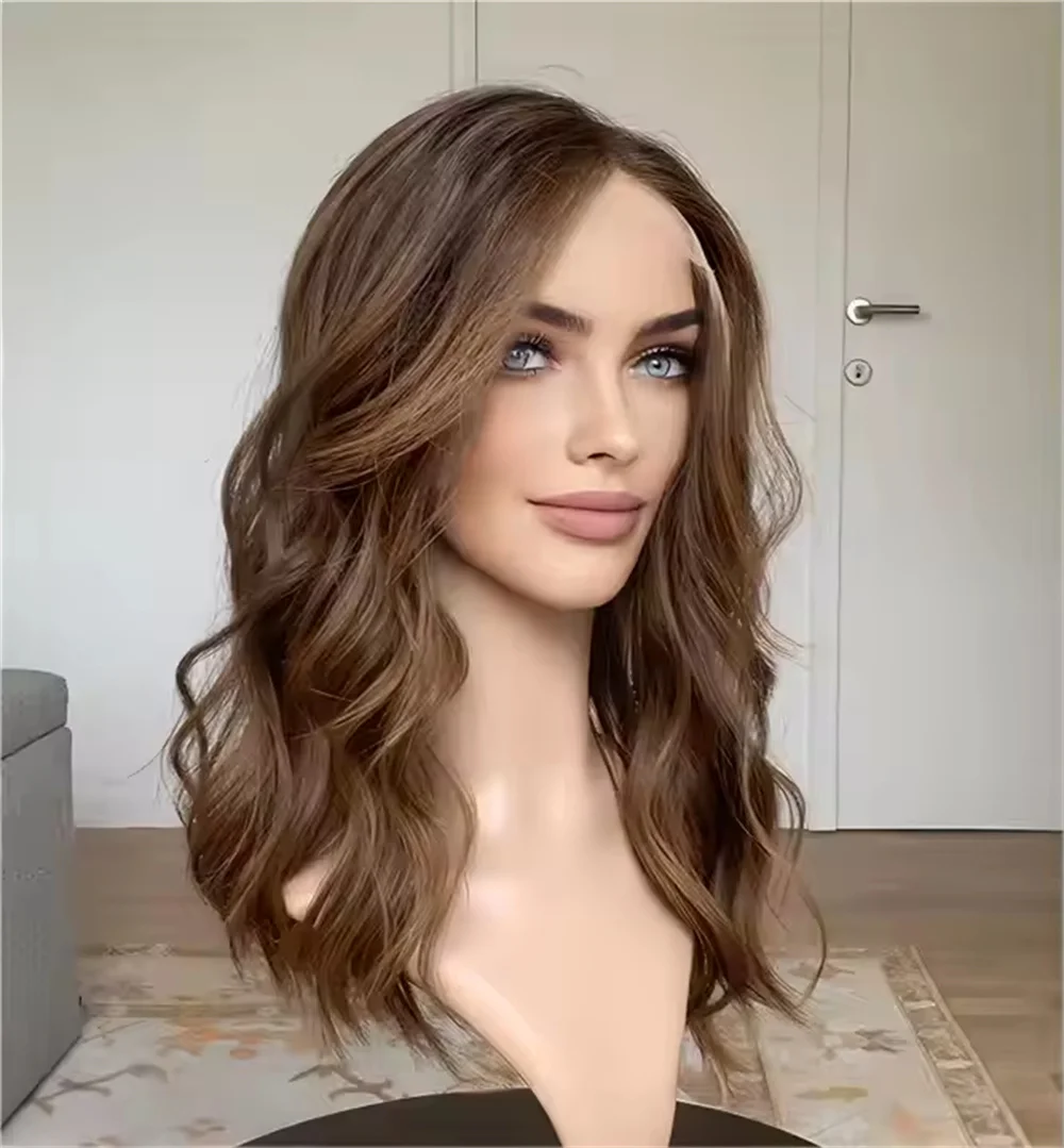Brunette Blonde Highlights Luxury HD Lace Wig Shoulder FUTURA Synthetic Fibre Jewish Wig Realistic Look for Women with Hair Loss