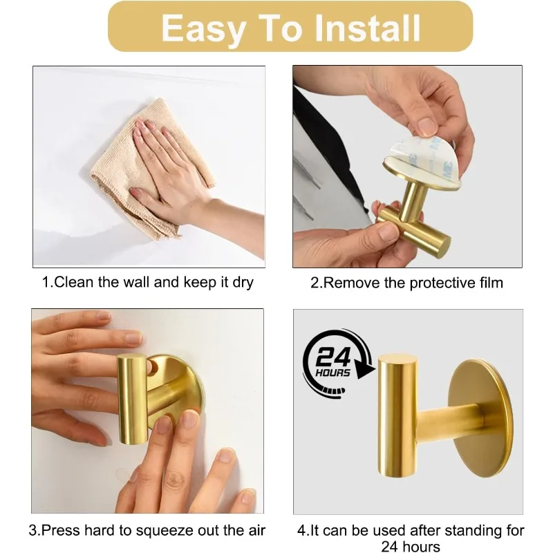 【Easy to Install】 No need to drill, just tear off the protective film on the back of hook and press it to stick on the wall. Before using the towel hooks, please keep the wall surface clean, dry and smooth. It is best to wait for 24 hours to ensure better adhesion of the wall hooks.