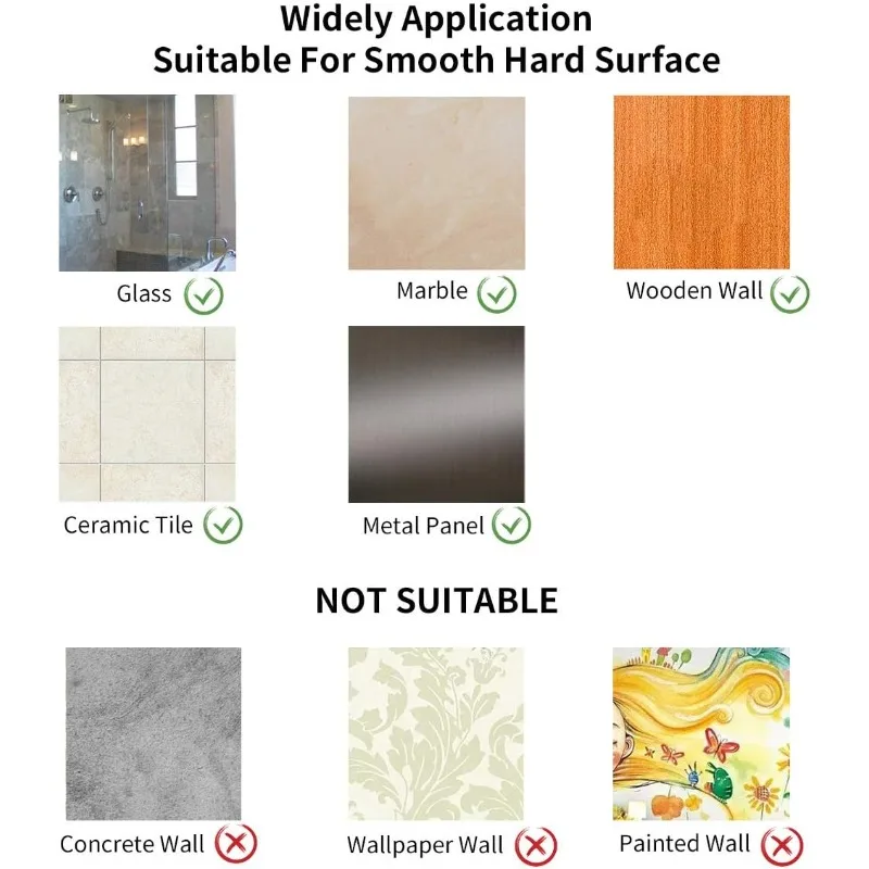 Note: Not suitable for wallpaper, paint, painted walls, or rough surfaces. Attaching to these surfaces may cause damage to the wall.