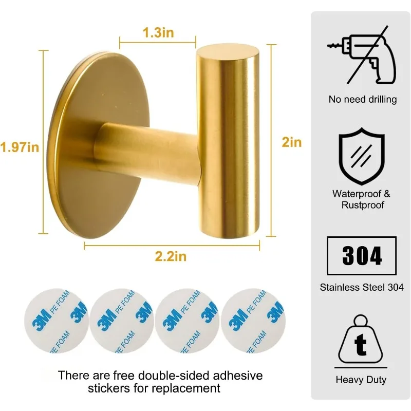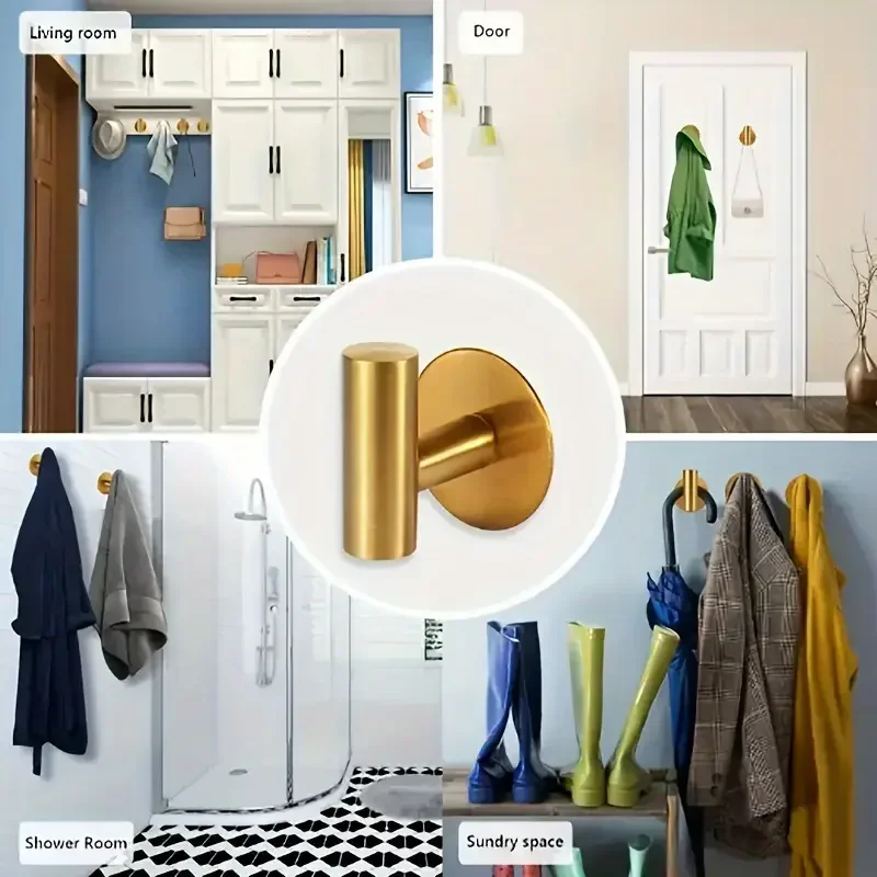【High-Quality Towel Hook】The towel hooks are made of high-quality 304 stainless steel, which are waterproof and does not rust. The multi-layer brushed finish of wall hooks have no scratches. Smooth surface without sharp edges, bathroom towel hook can hang bathrobes, towels, pants and shirts.