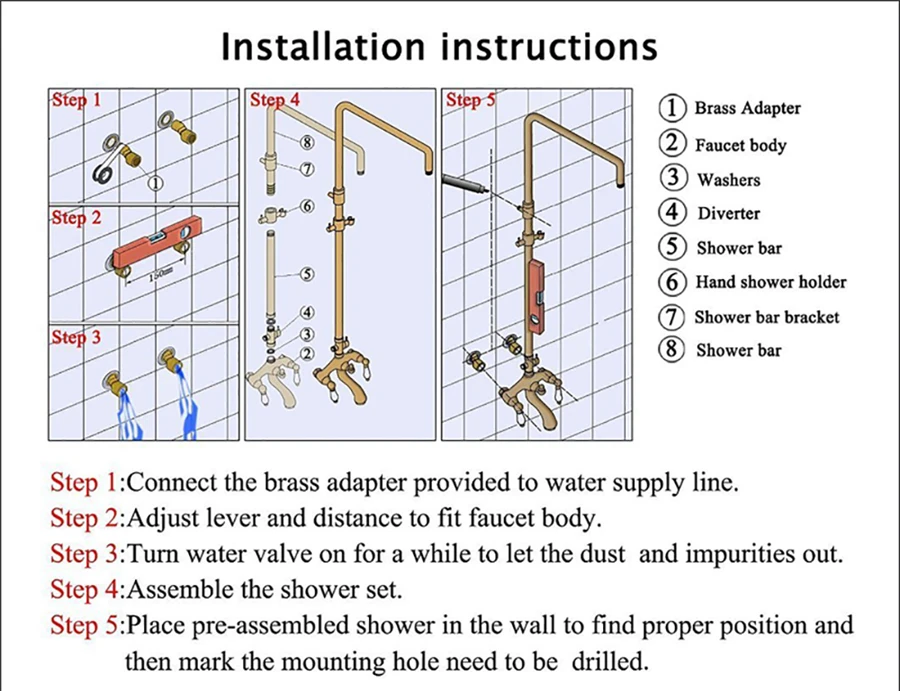 - Shower Hose material: Stainless steel shower set