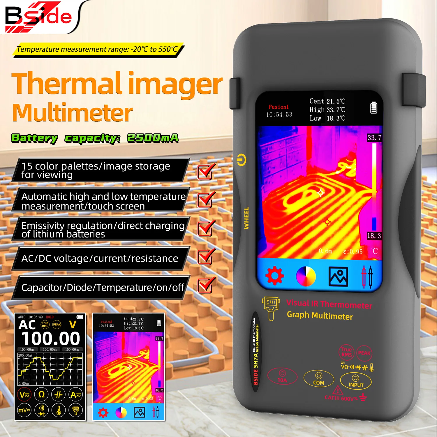 BSIDE NEW SH7A Thermal Imager Digital Multimeter 320*320 resolution 3.98 inch touchable 15 color palettes circuit board repair