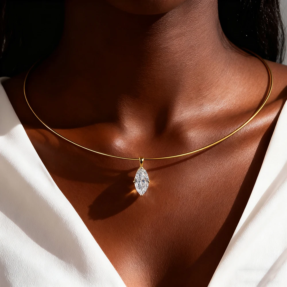 BXINY 3CT Solitaire Moissanite Pendant Collar Necklace 100%S925 Silver Plated 18k Gold Lab Diamond Choker for Women Gift Jewelry