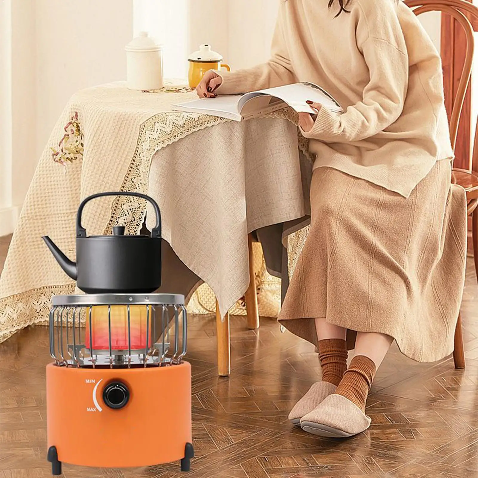 1.Portable Camping Heater: The camping heater provides efficient heating and cooking functions, ensuring warmth and hot meals during outdoor adventures while featuring a space-saving design that enhances portability for temporary home solutions in any setting