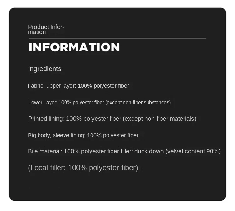 - Main fabric component: Polyester fiber (Polyester)