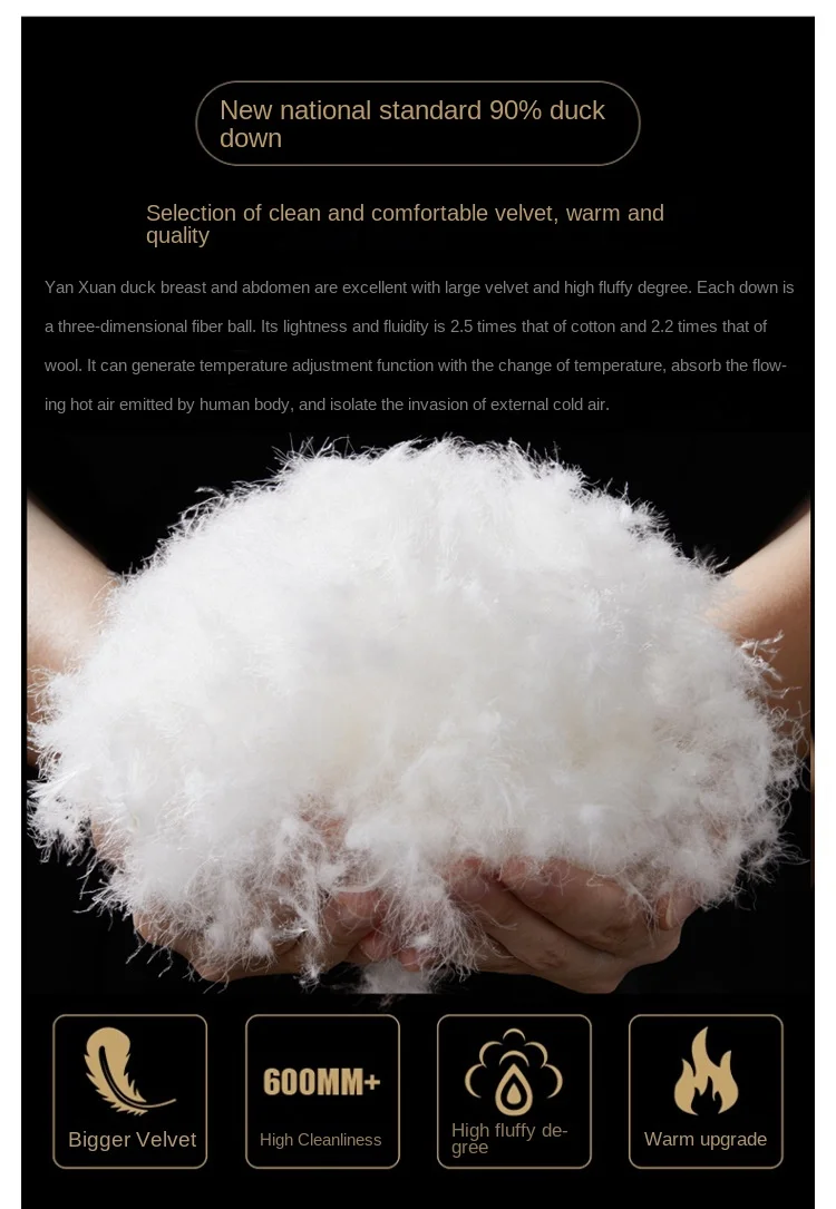 - Filling: White duck down