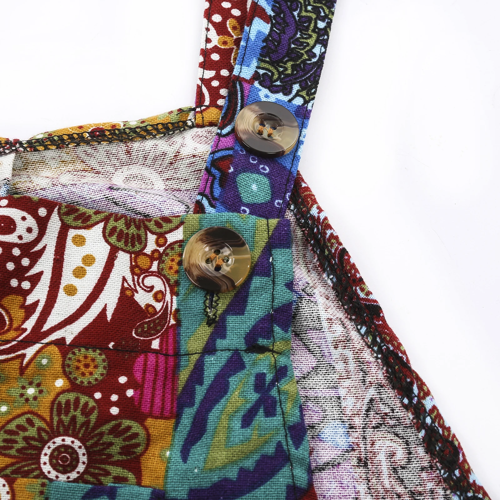 Women Summer Overalls, Multicolor Ethnic Style Square Neck Sleeveless Casual Jumpsuit with Pockets