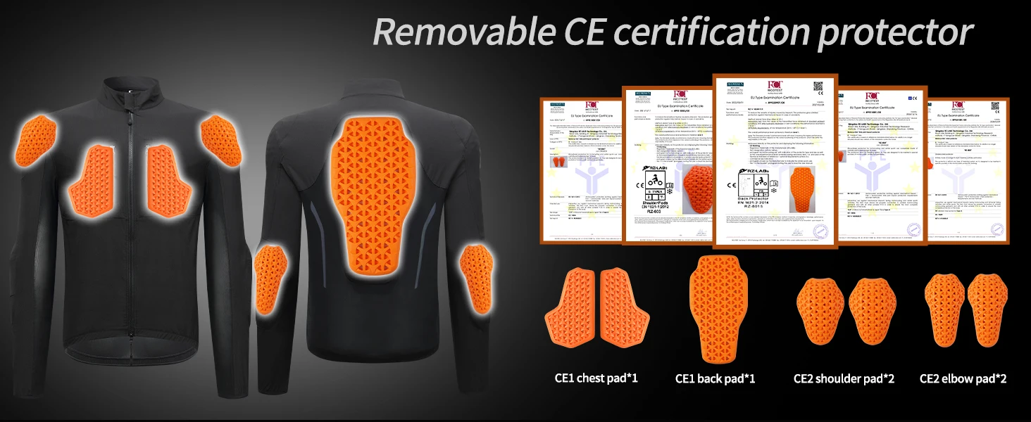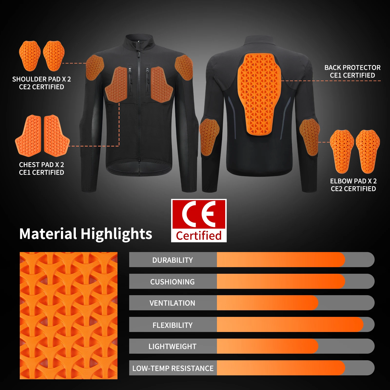 4. 【CE-Certified Armor】 Detachable Pads (chest/back/shoulders/elbows) with honeycomb shock absorption (60J impact), for street and track.
