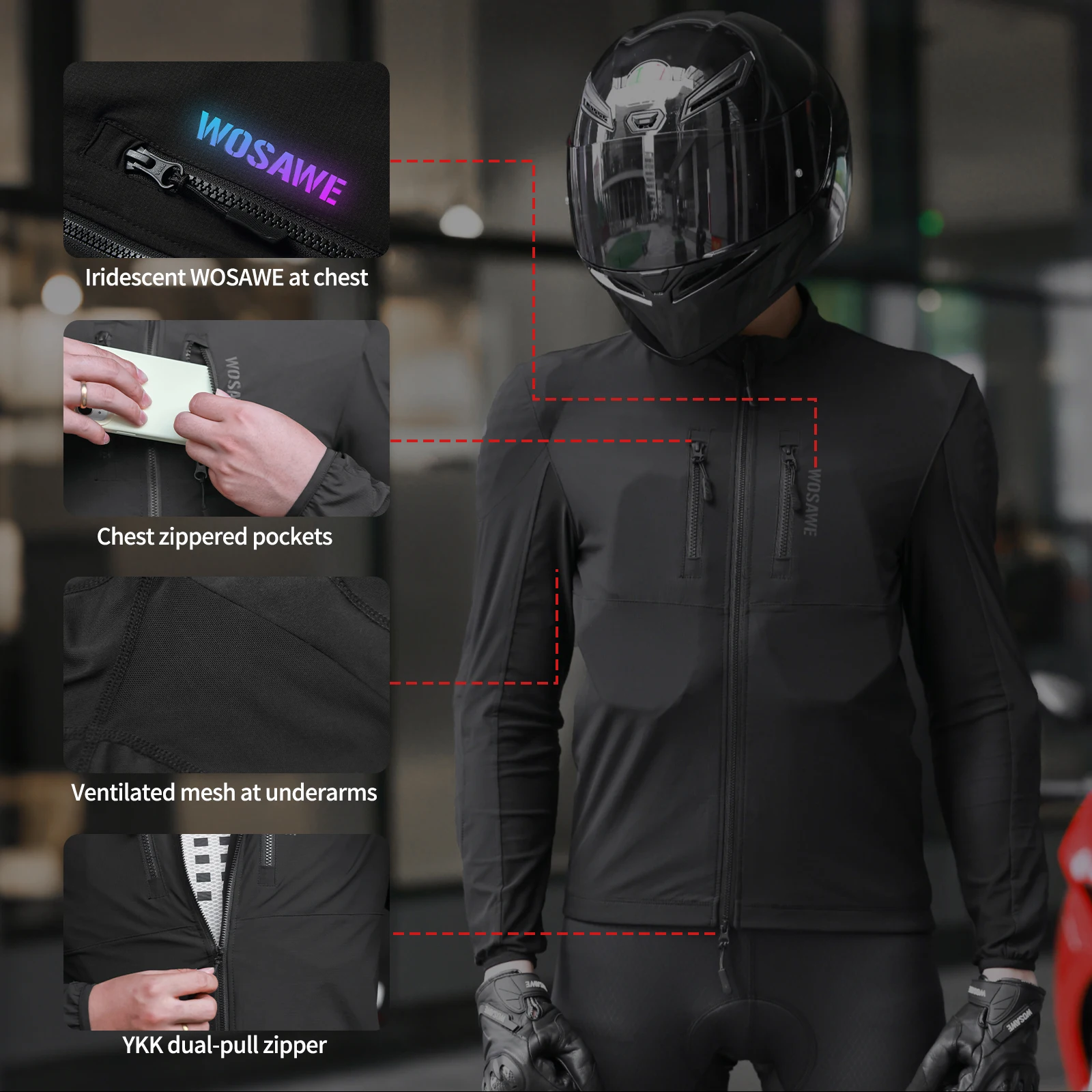 7. 【Visibility Safety】 Reflective WOSAWE at chest + Back reflective stripes boost visibility by 100% in rain/fog.