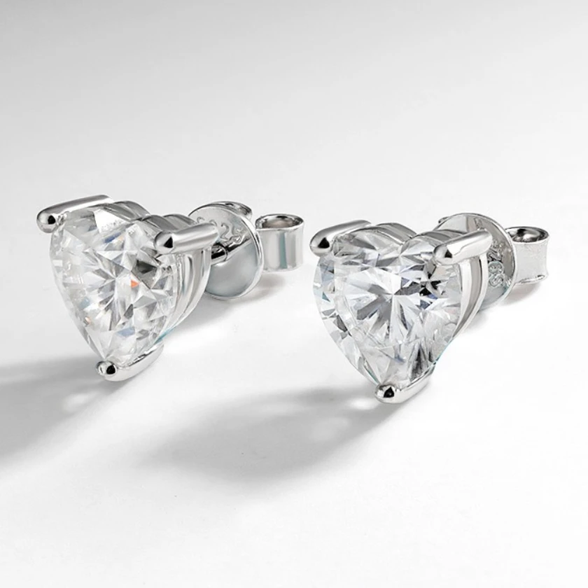 - Feature: moissanite heart earrings 925 silver