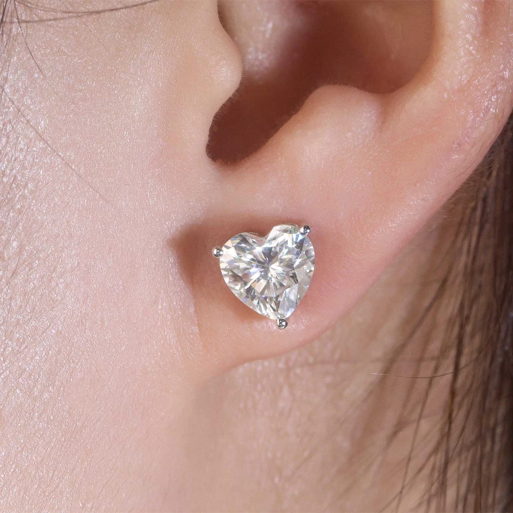 - Feature5: heart shaped moissanite stud earrings