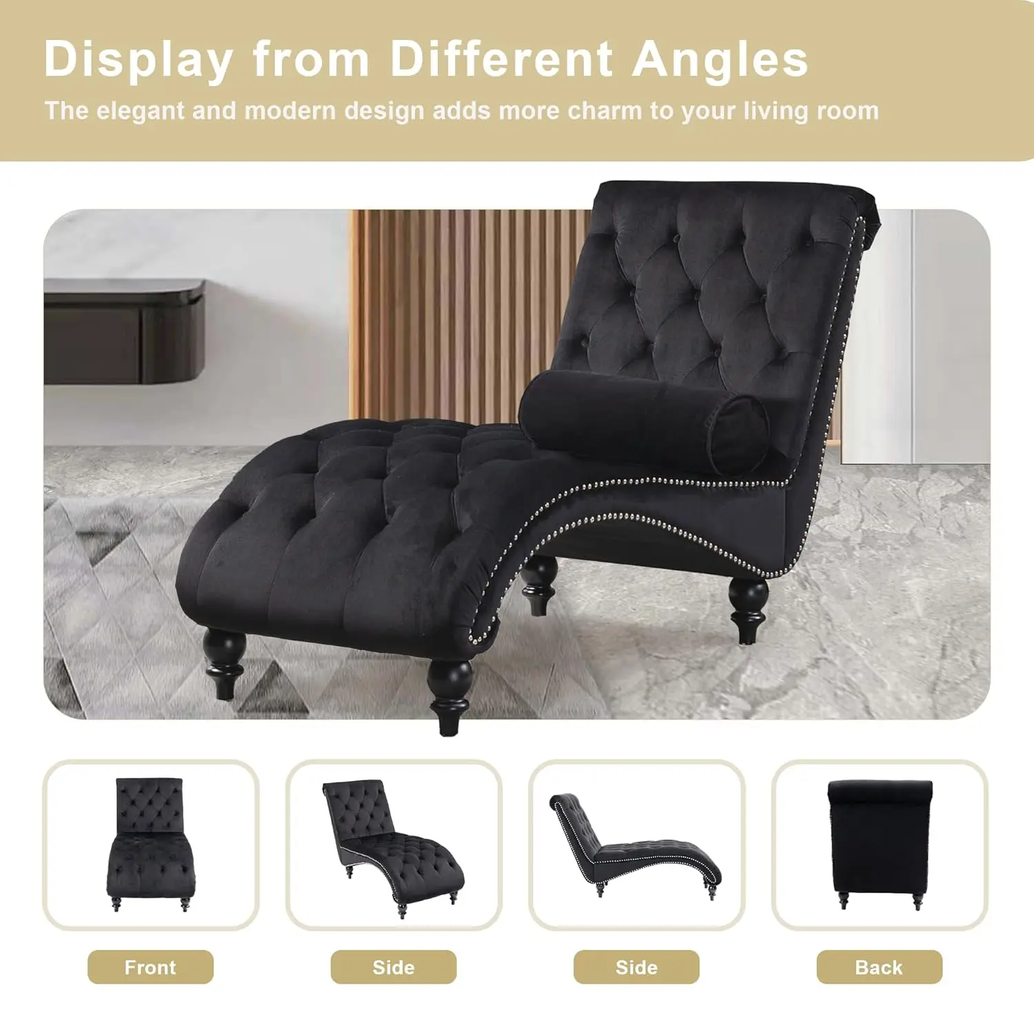 【Elegant Decorative】Tufted buttons combined with exquisite studs add a touch of classic and modern flair to the indoor chaise lounge. No matter your home decor style, it effortlessly becomes the centerpiece. Ideal for bedrooms, living rooms, studies, or home offices, it’s a testament to your refined taste.