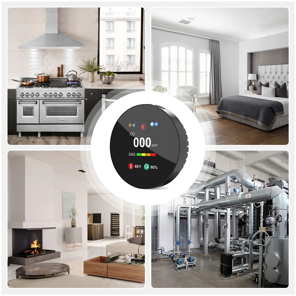 Application Scope: Gas & carbon monoxide detector is suitable for use in bedrooms, living rooms, cars, and other places where people are present, providing safety protection for families and travelers.